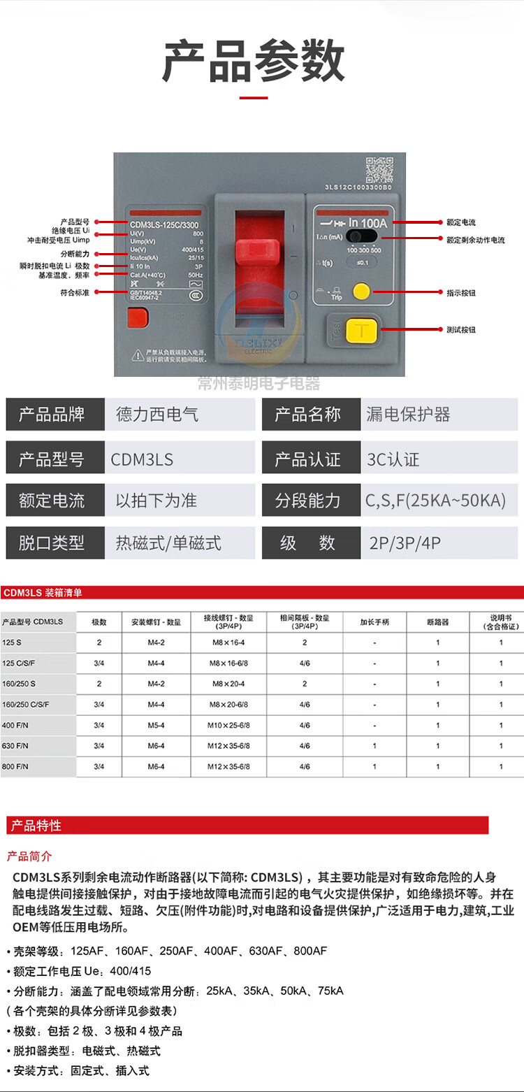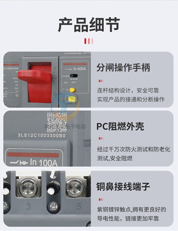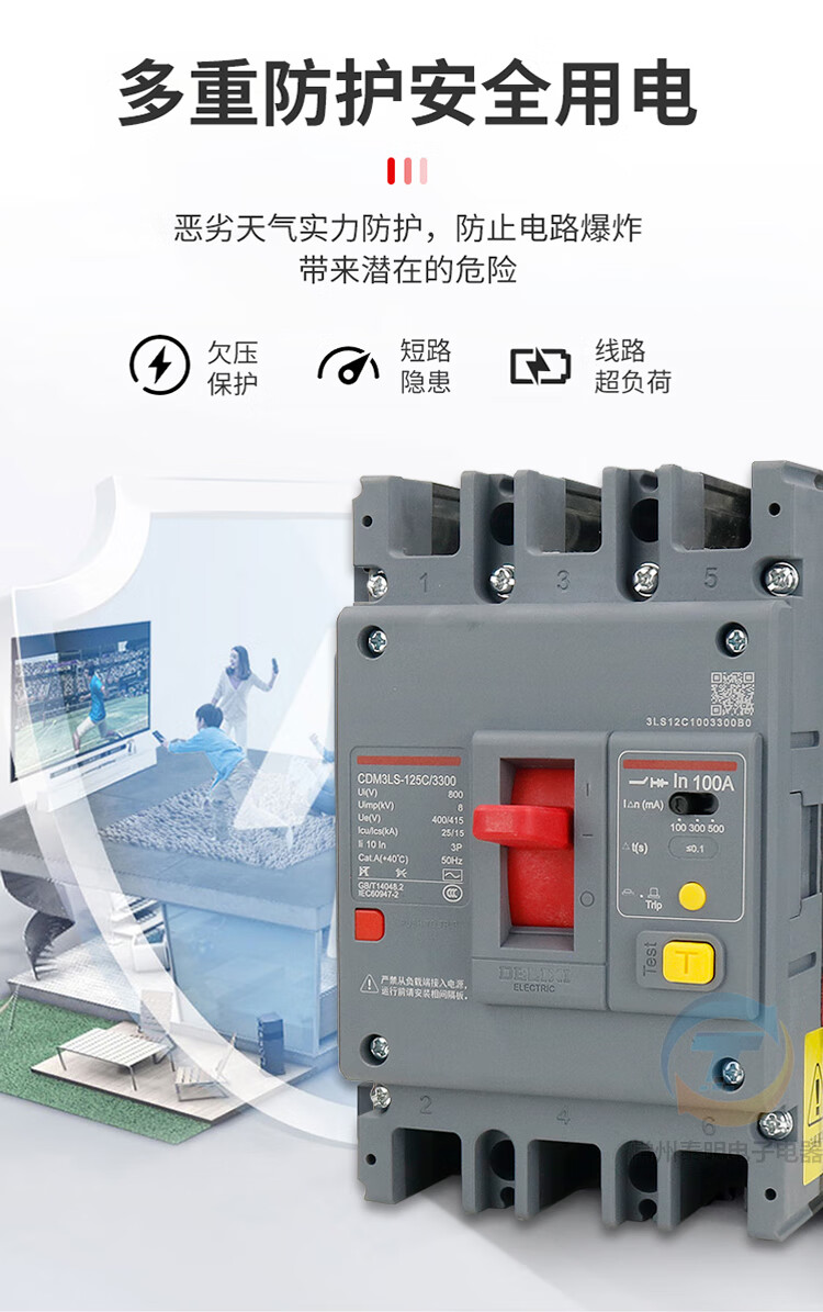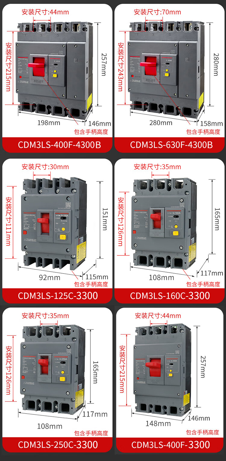 Delixi air switch with leakage protection circuit breaker 60A plastic case 200A250A400 air switch 4P 63A 3P