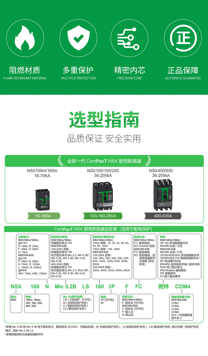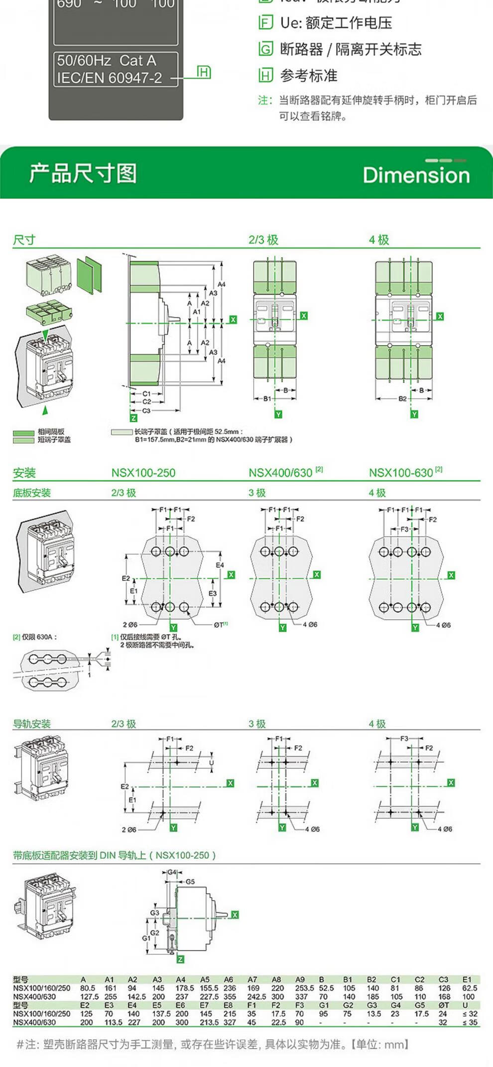 Schneider Molded Case Circuit Breaker/F 3P 3D/4P 4D 160A 250A Air Switch NSX160 125A 4P x S 100kA