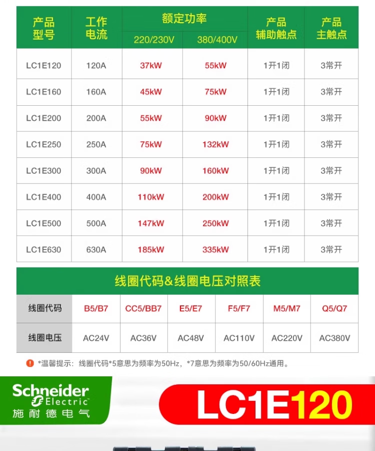 Schneider AC contactor LC1E120/E160/E200/250/300/400/630F5N/Q5N LC1E160 M5N 220V
