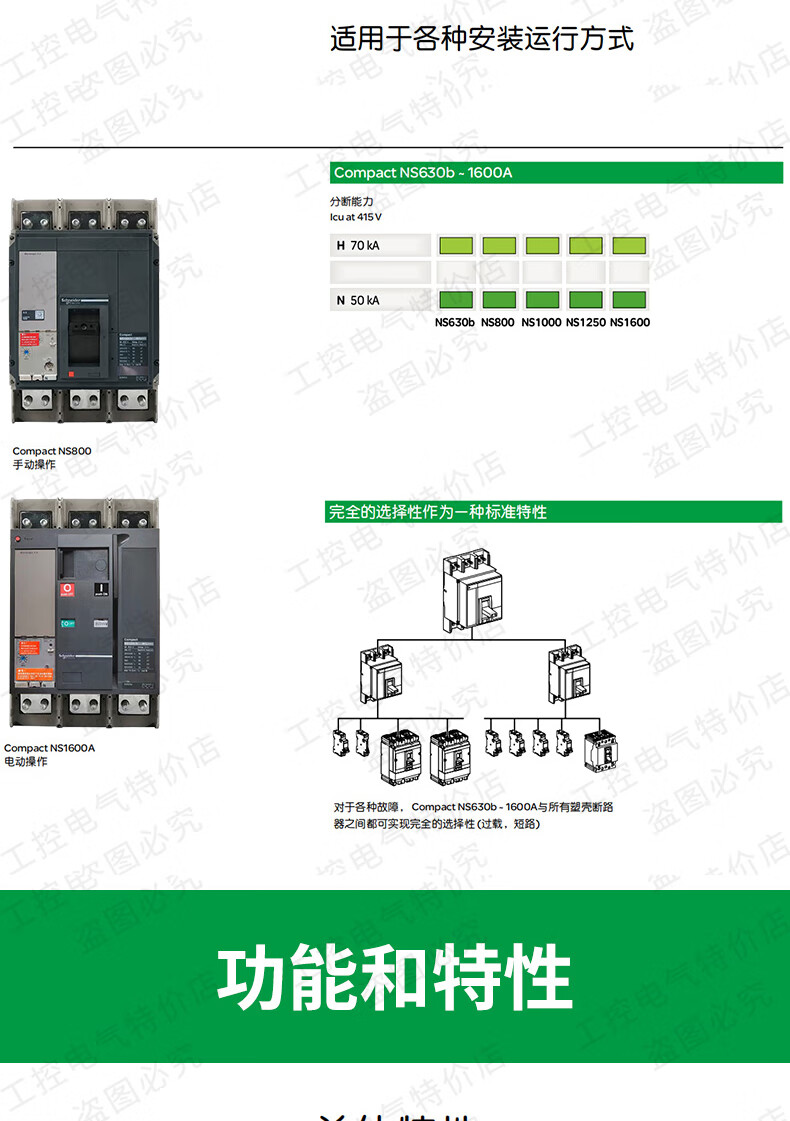 Schneider molded case circuit breaker series 630b/800/1000/1250/1600A/N/H/L 3P/4P NS1600N 1600A manual operation x 3P