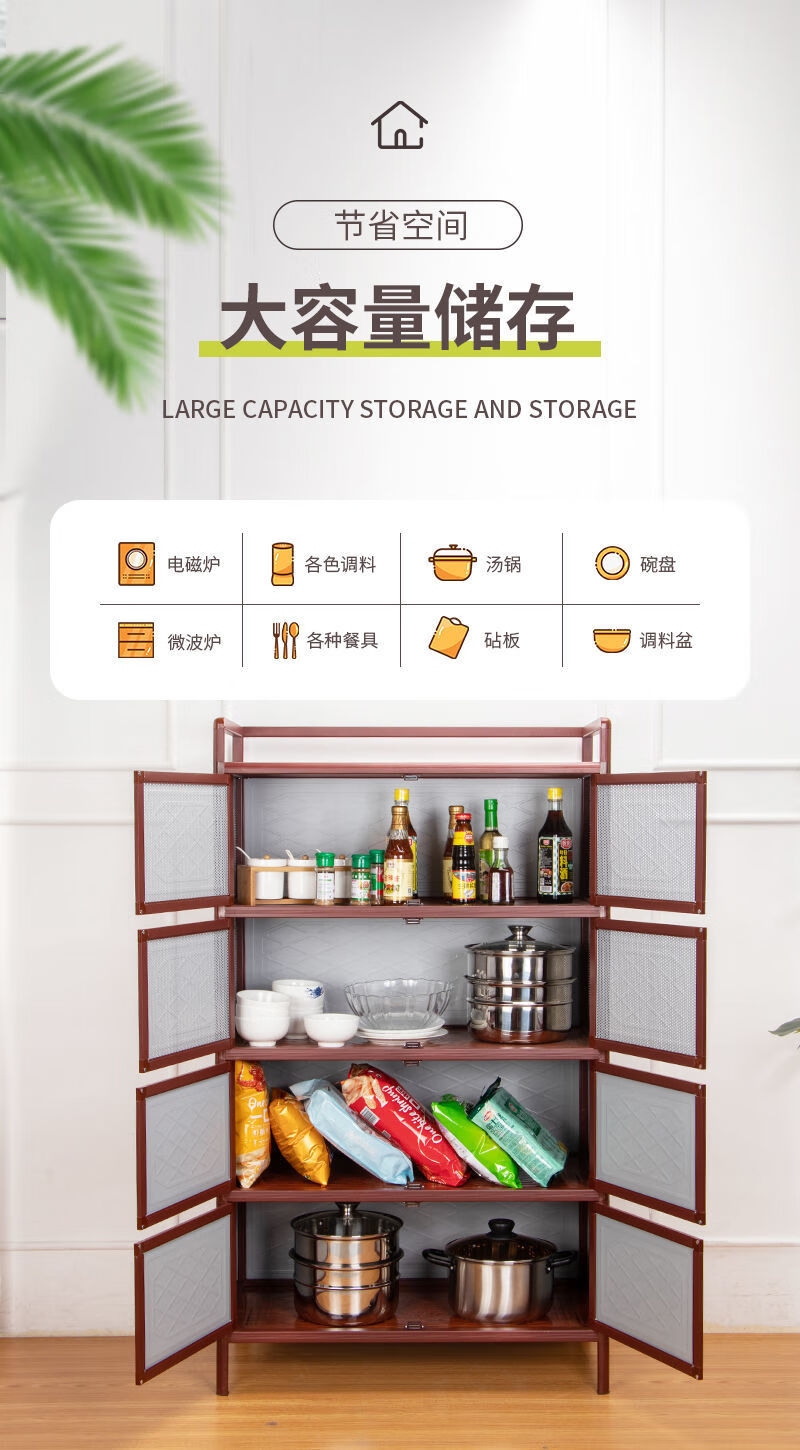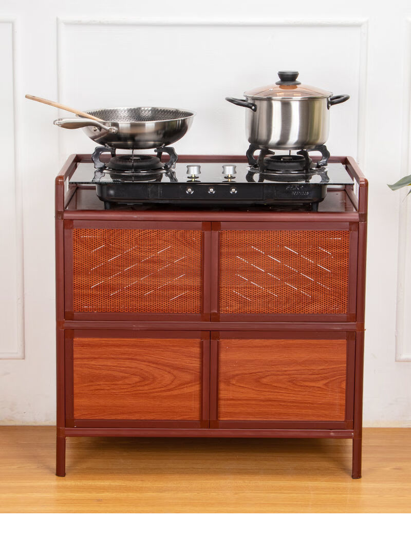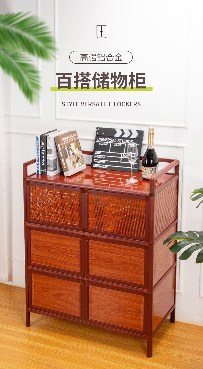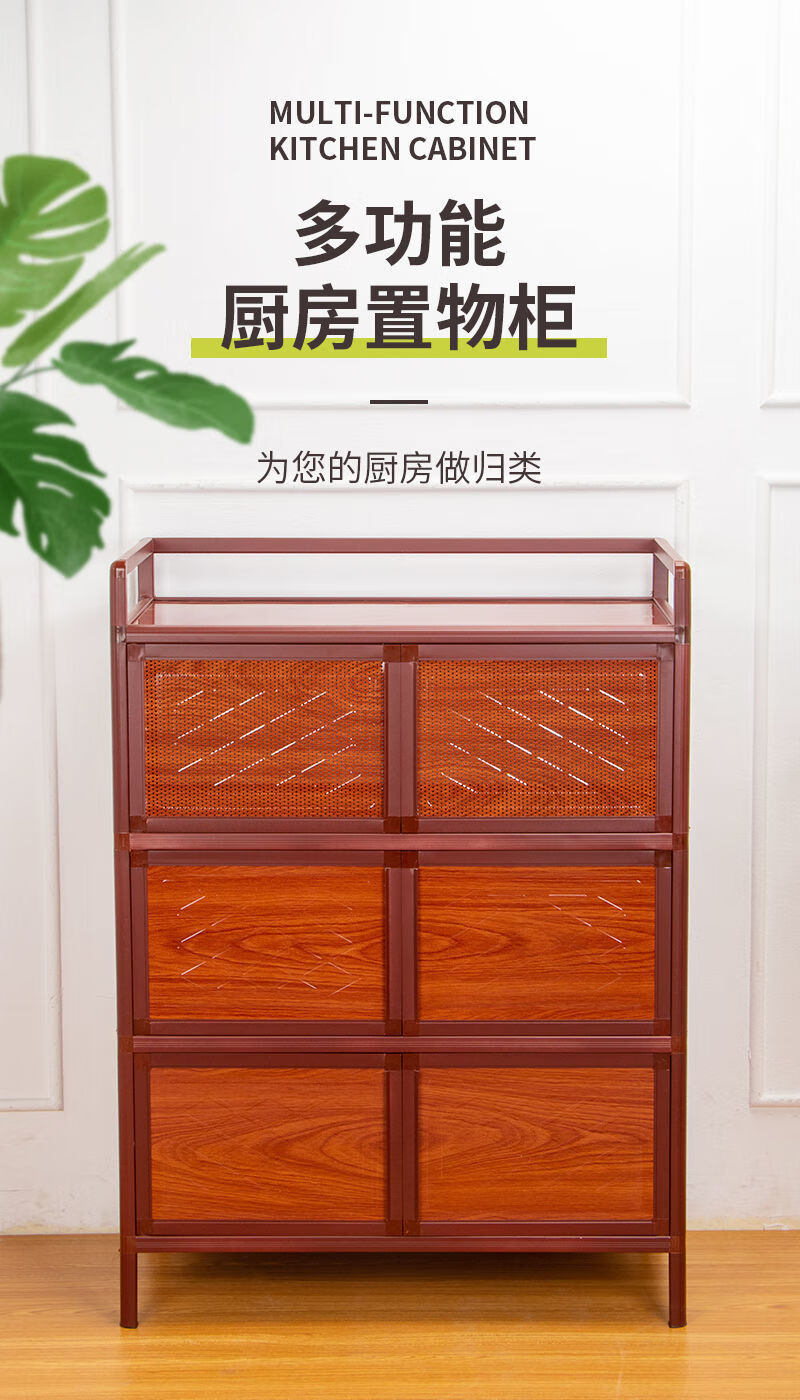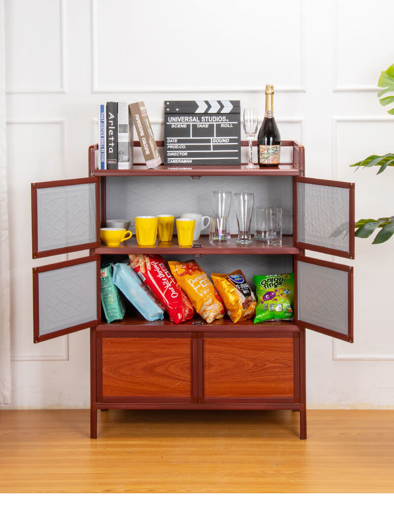 FANCYCHIC kitchen cabinets, cupboards, simple living room storage cabinets, red wood grain storage cabinets, tea cabinets, aluminum alloy sideboards, two layers, length 50*width 39*height 71, red wood grain style (steel plate style)