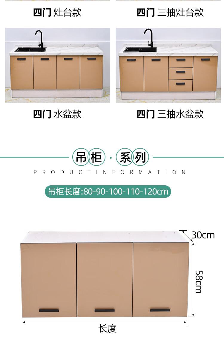 FANCYCHIC simple cabinet marble countertop cabinet slate kitchen cabinet stove cabinet rental home integrated kitchen cabinet customization 100cm flat-double door one size
