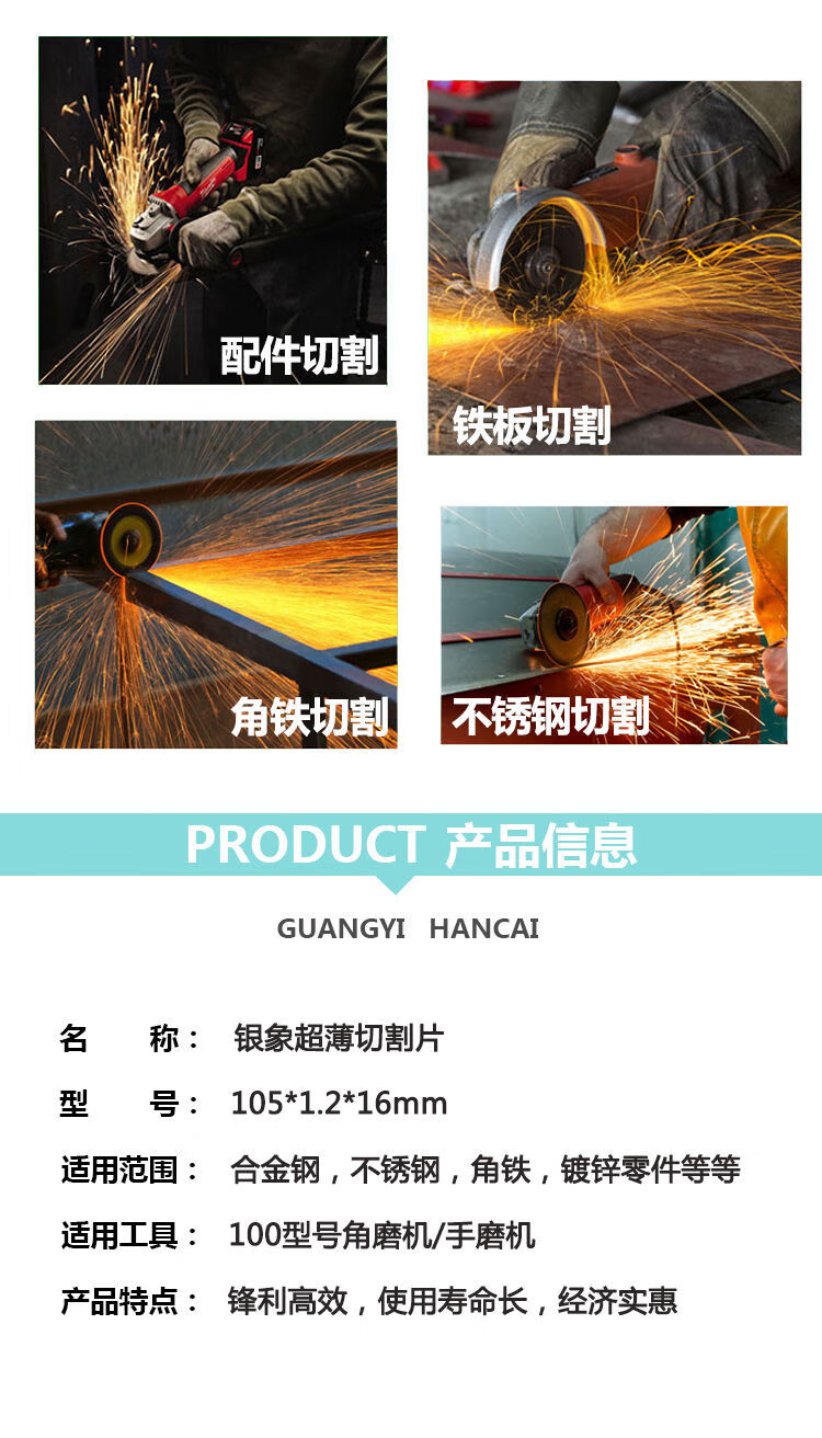 Wen Yijia customized silver elephant cutting disc 105*1.2*16mm ultra-thin stainless steel cutting disc 4-inch angle grinding disc elephant cut silver elephant 105*1.2 green double mesh 8 boxes of 400 pieces