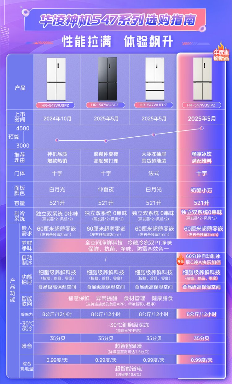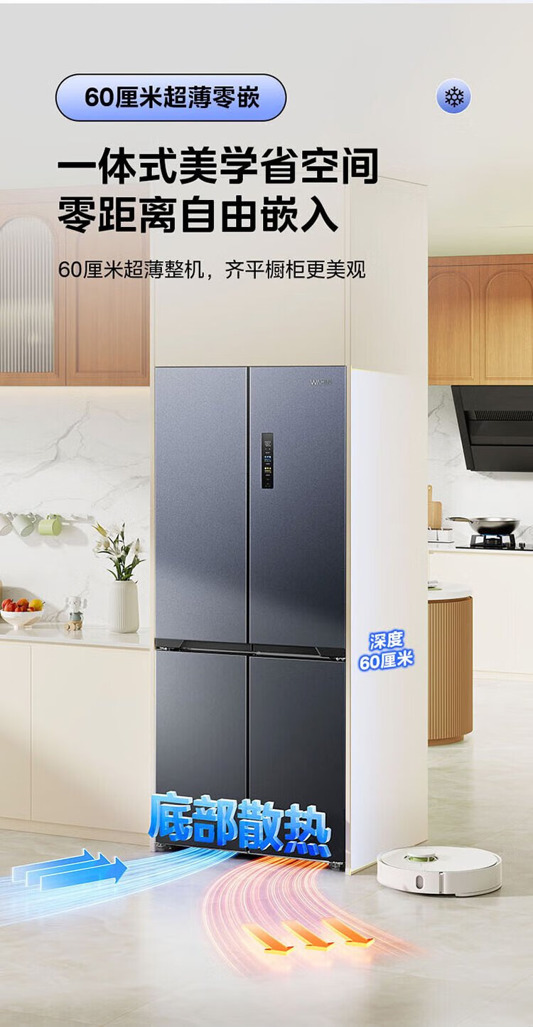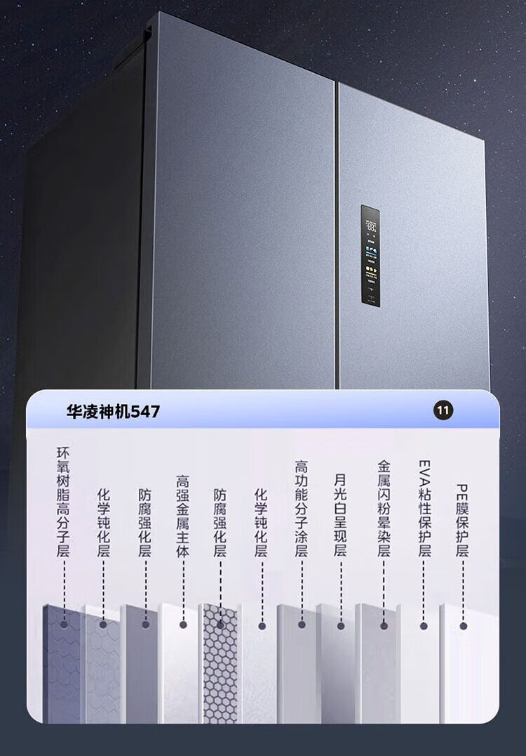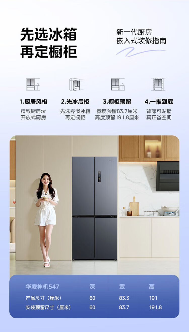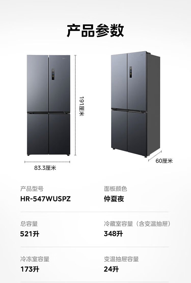Hualing Shenji 547 Midea produces dual-system dual-cycle 60cm ultra-thin zero-embedded cross-door four-door refrigerator first-class energy efficiency HR-547WUSPZ Midsummer Night