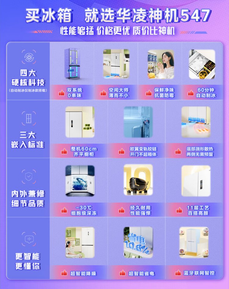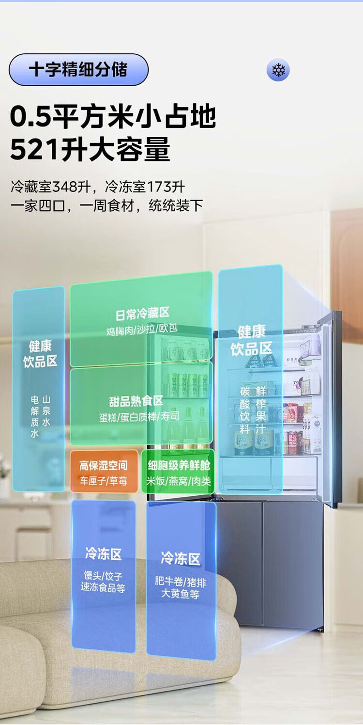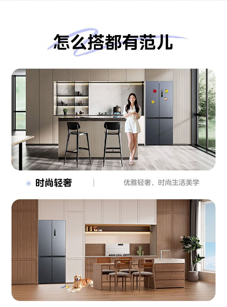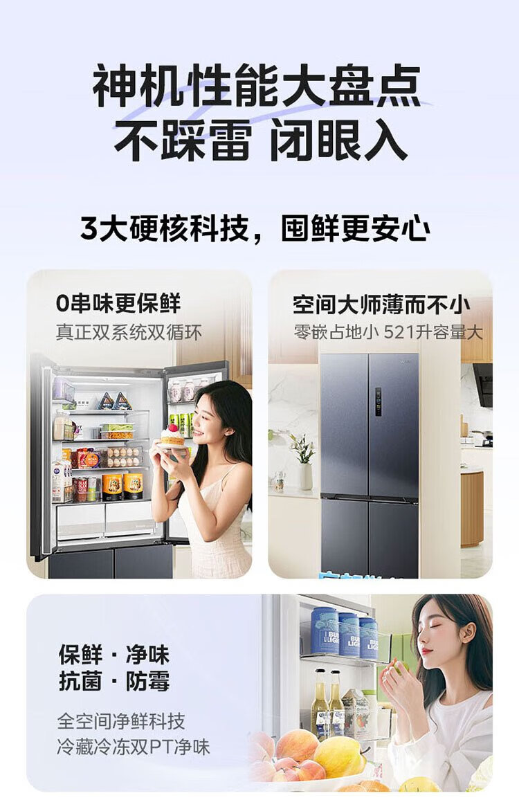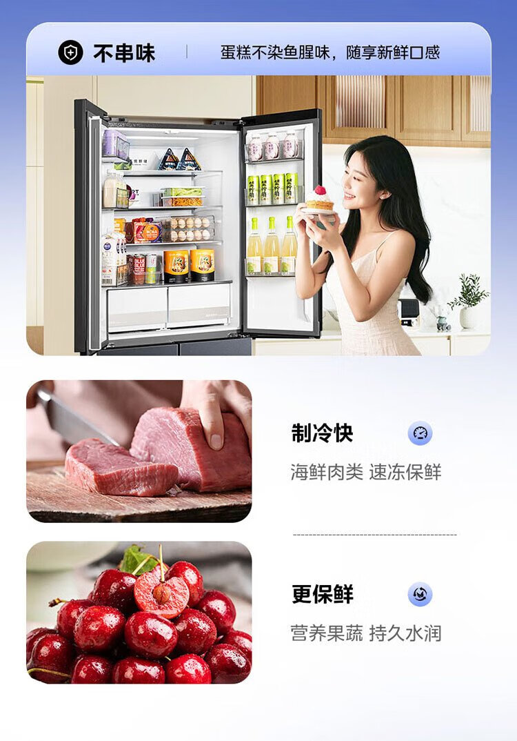 Hualing Shenji 547 Midea produces dual-system dual-cycle 60cm ultra-thin zero-embedded cross-door four-door refrigerator first-class energy efficiency HR-547WUSPZ Midsummer Night