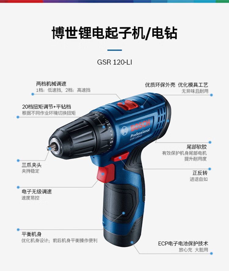 Bosch (BOSCH) GSR120-Li Hand Drill Rechargeable Drill Electric Screwdriver Lithium Battery Household Pistol Drill Cordless Flashlight GSR120-Li Battery-Free Charger Plastic Box