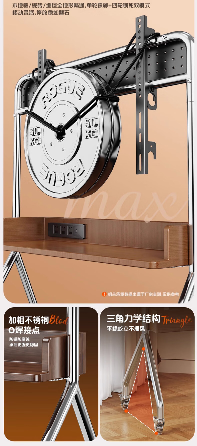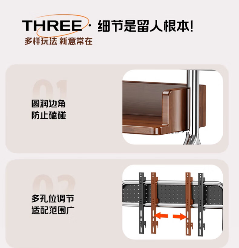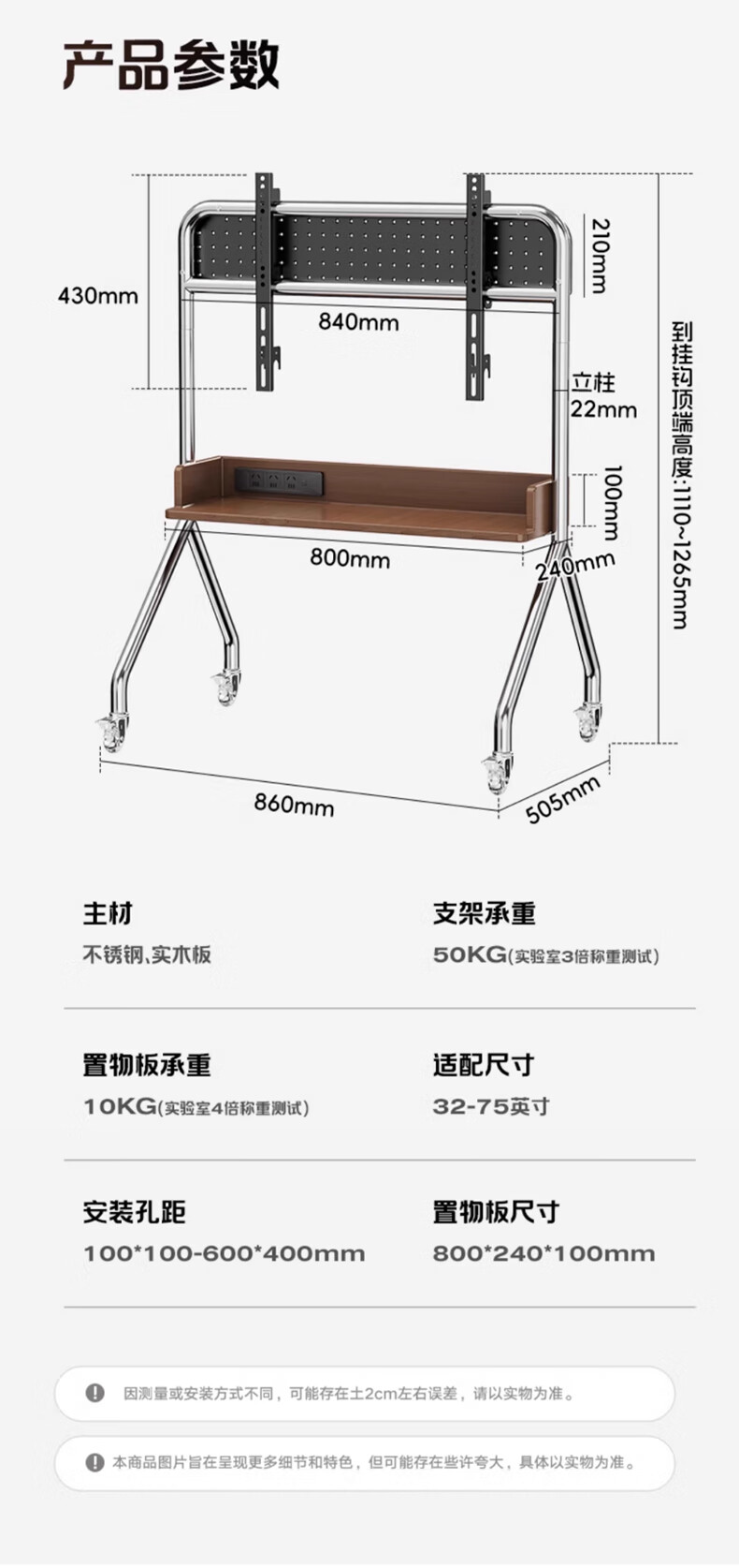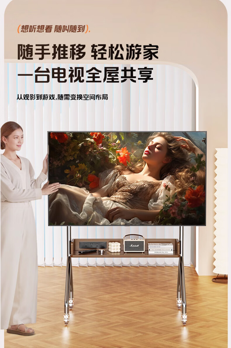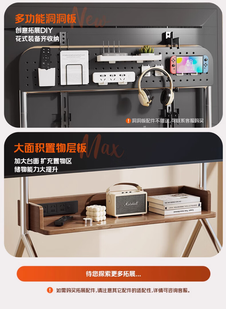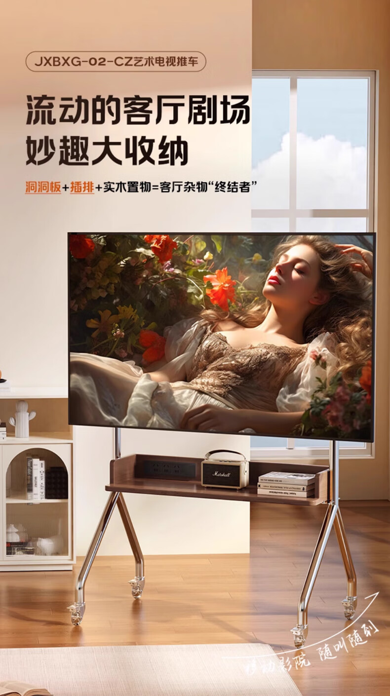 Beishi 32-75 inch universal TV stand mobile TV cart TV floor stand video conferencing TV hanger suitable for Xiaomi Hisense TCL Skyworth and other TV stands luxury model/socket row+stainless steel tube+oak storage tray+perforated board