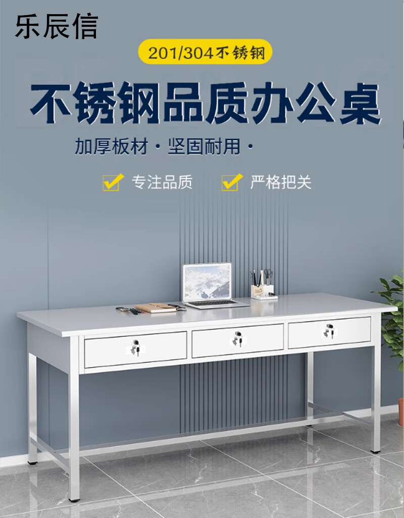 Lechenxin stainless steel office desk factory dust-free workshop single-layer workbench with drawer operation table 1.4m three-bucket square table (304)