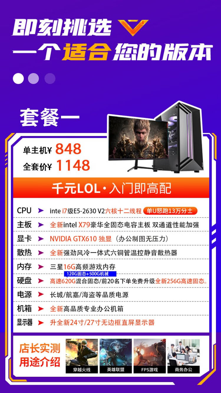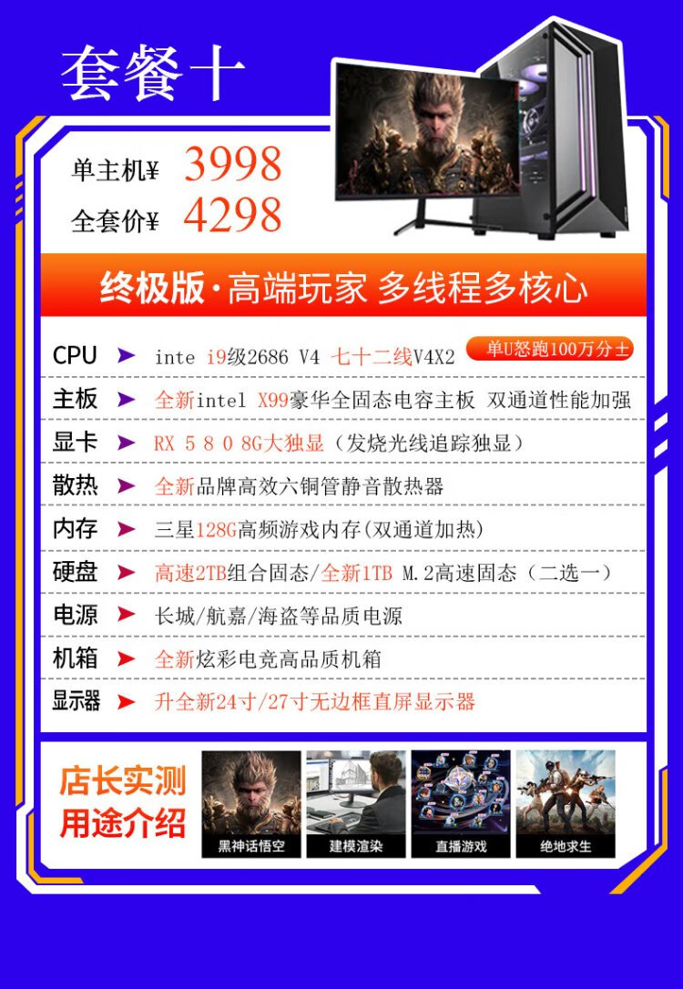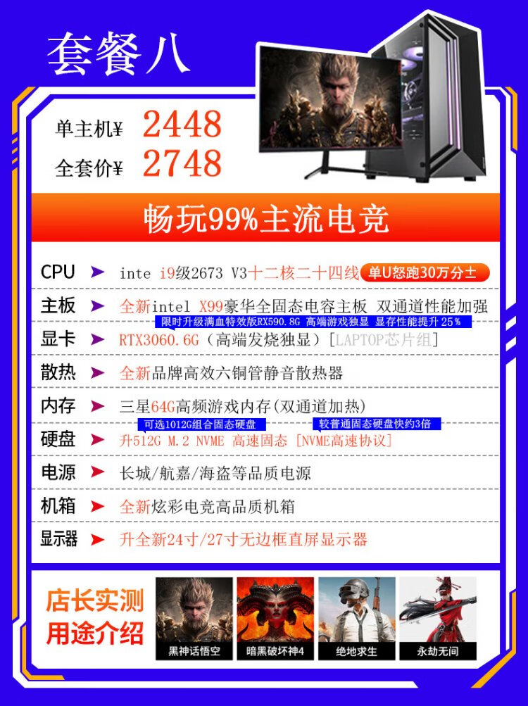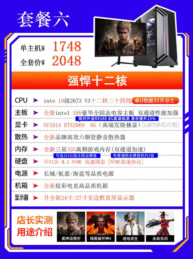 Intel i9 level game independent graphics business office design clip LOL Black Myth RTX4060 gaming independent graphics used desktop computer DIY assembly computer i9 level ten core 16G+620G GTX705 single host 99% new