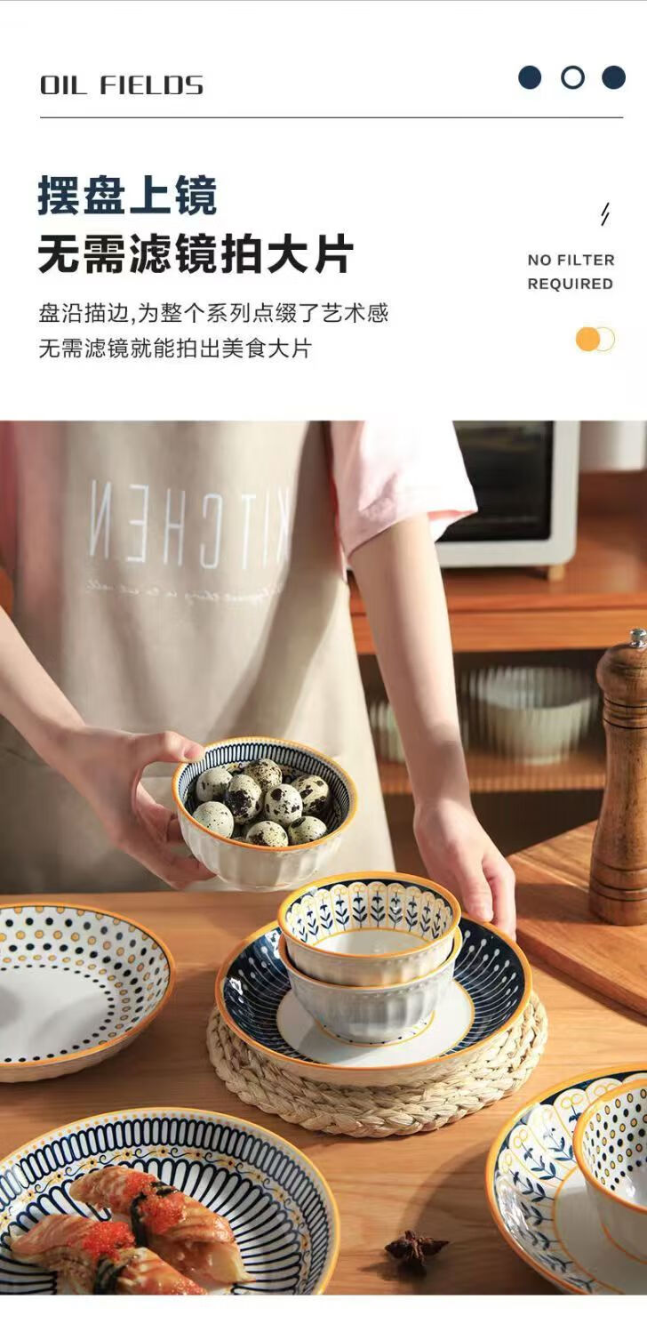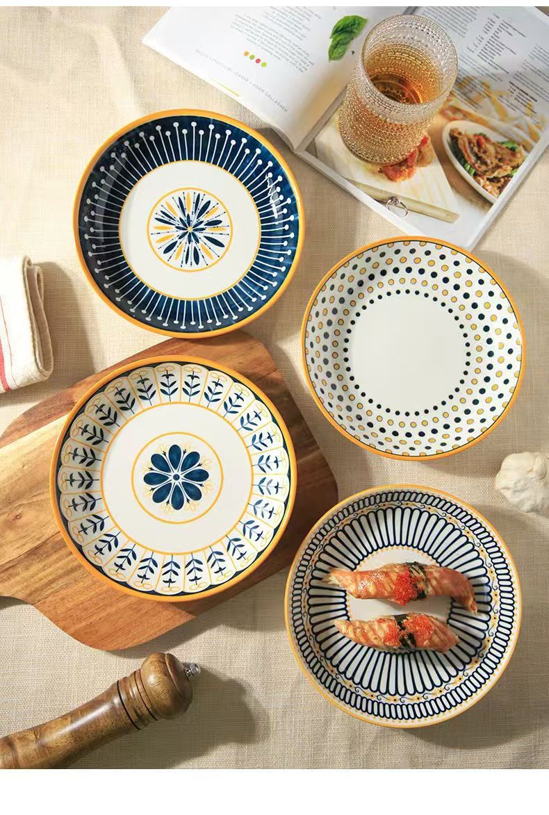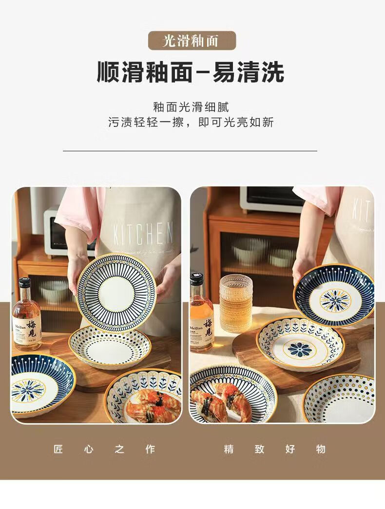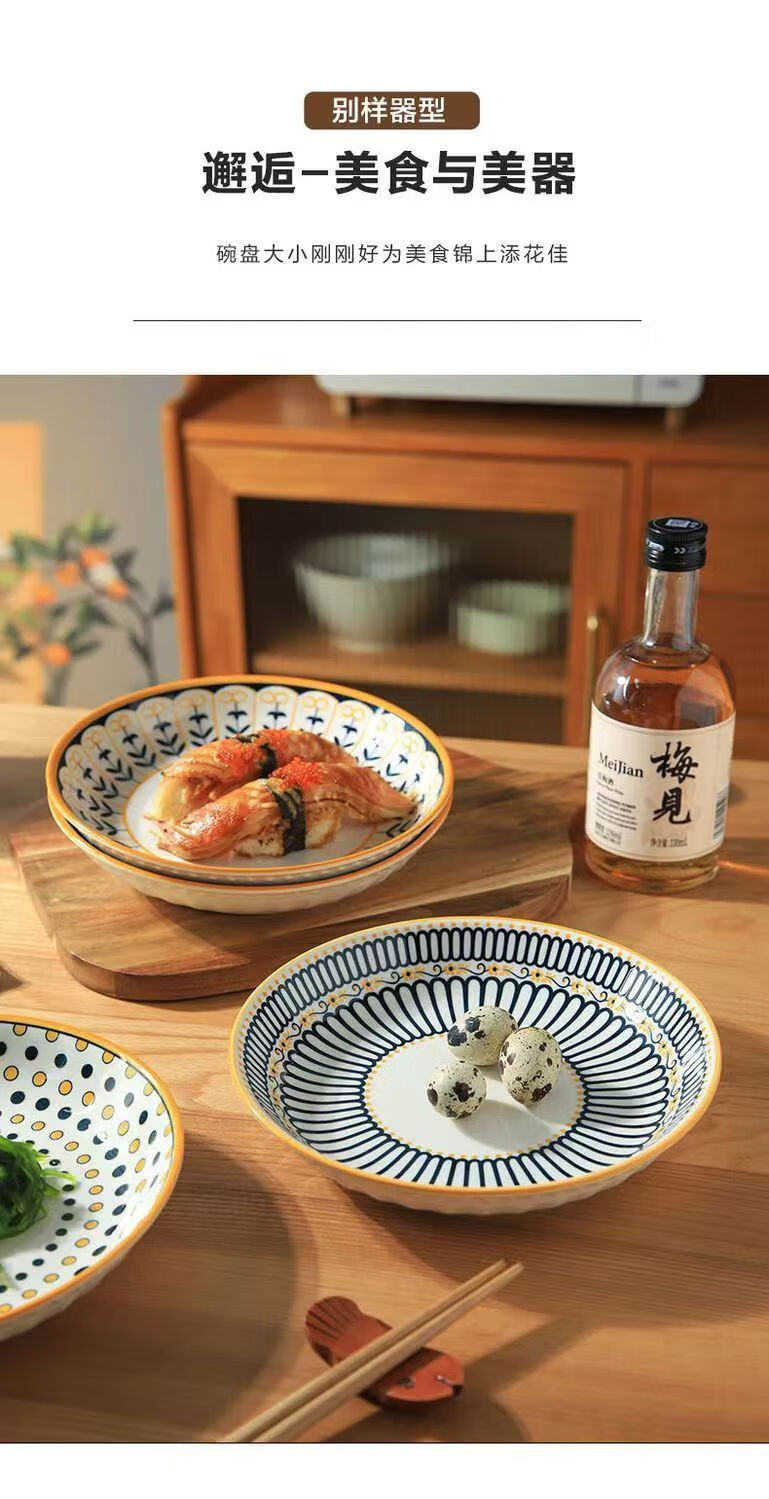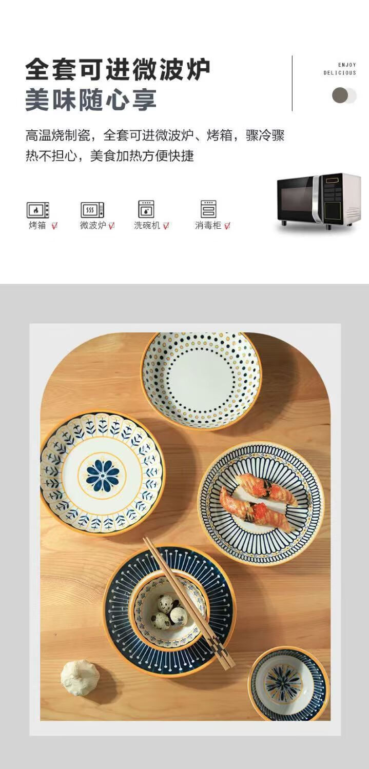 Nordic ceramic bowl rice bowl large bowl thickened household plate ins style high-looking anti-scalding plate and bowl set tableware 7.5-inch double-eared bowl + spoon good luck and colorful