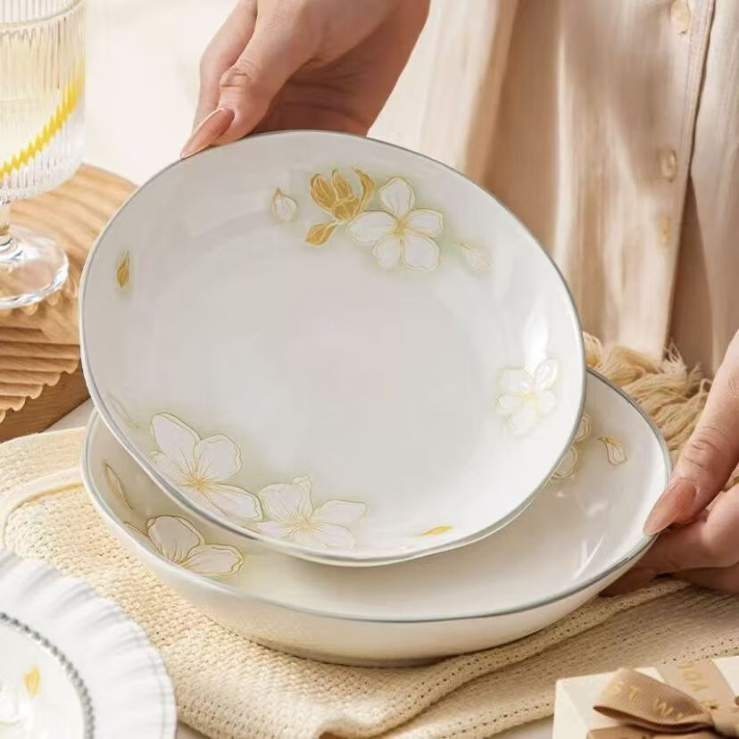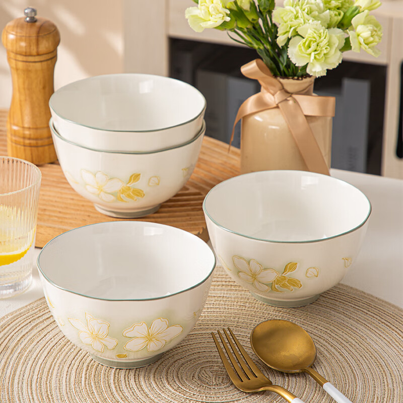 Seto-yaki gold leaf ceramic bowls and plates, high-looking plates, rice bowls, soup bowls, home dining plates, fish plates, 4-pack, Seto-yaki 4-inch flavor plates