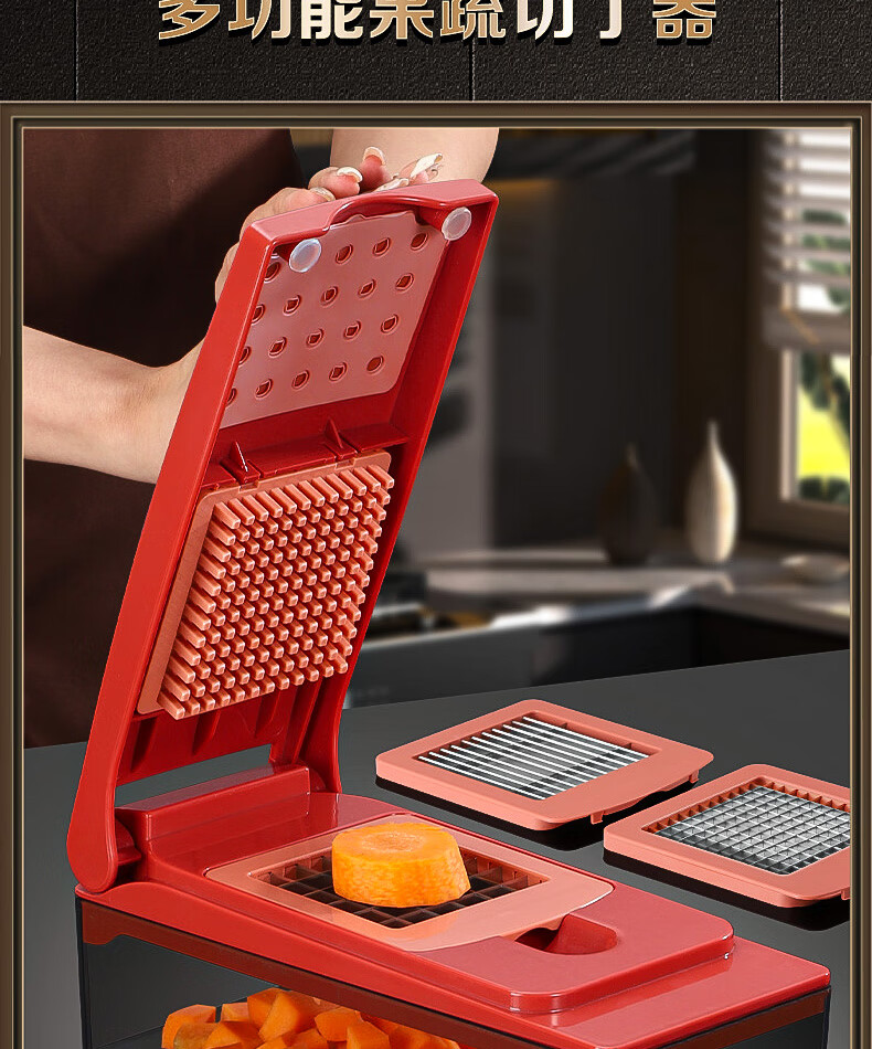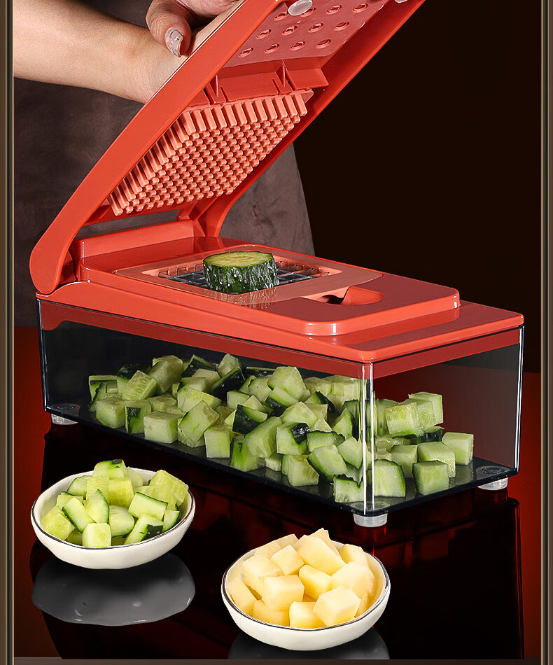 New vegetable cutter, dicing artifact, household kitchen cutting, potatoes, onions, cucumbers, radish slices and strips, commercial household commercial dicing device, small diced grains + large diced grains +