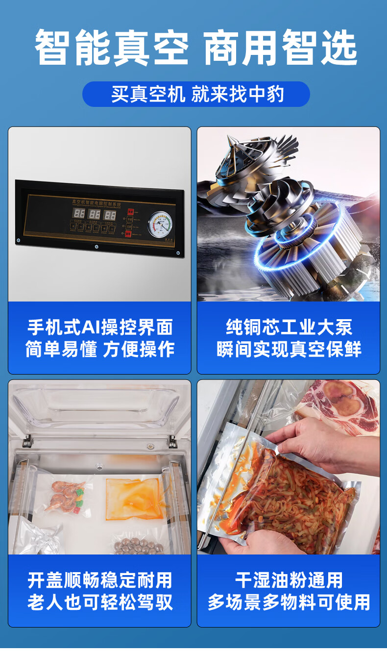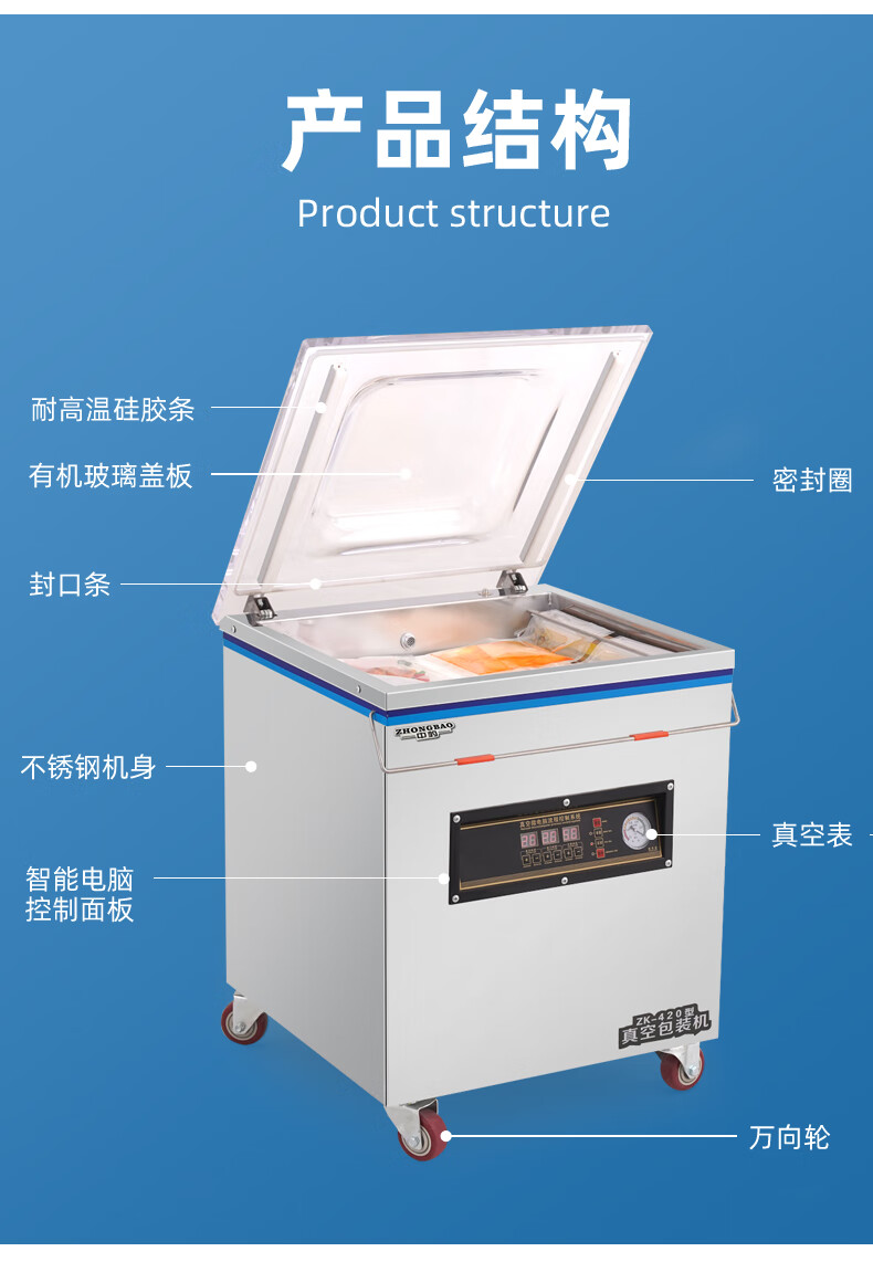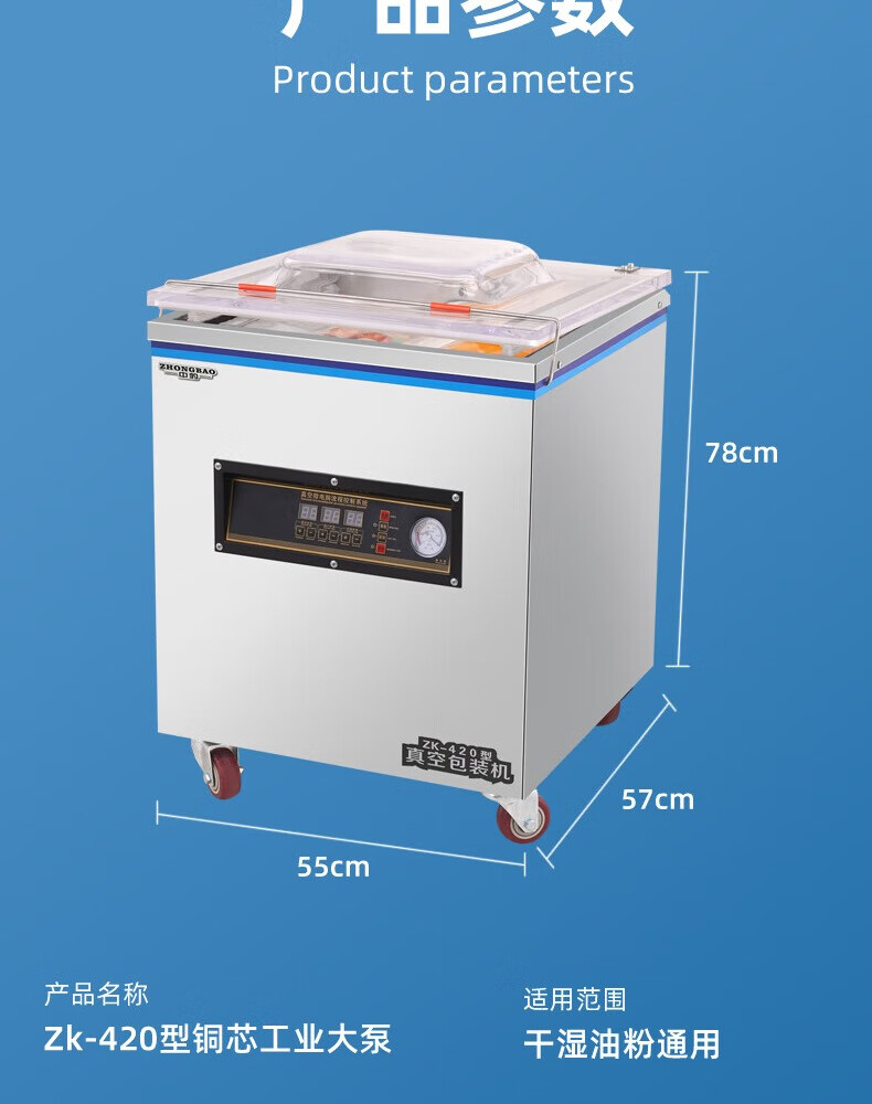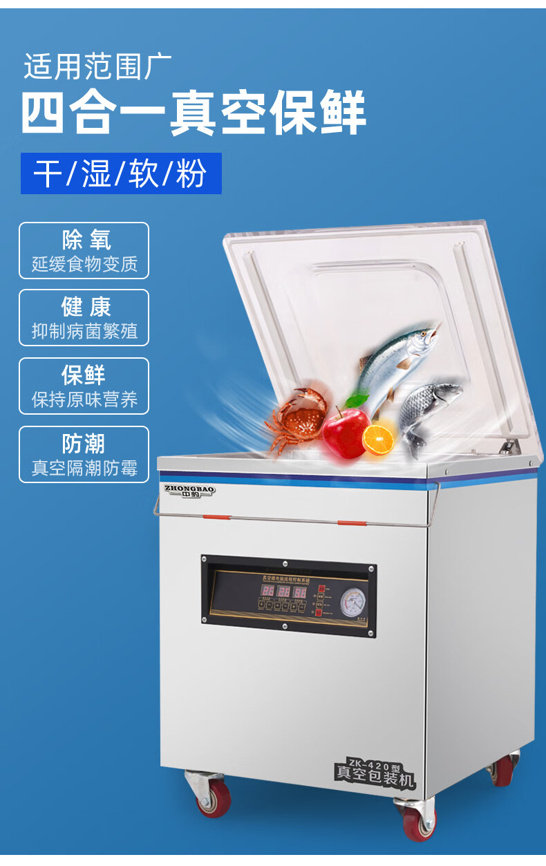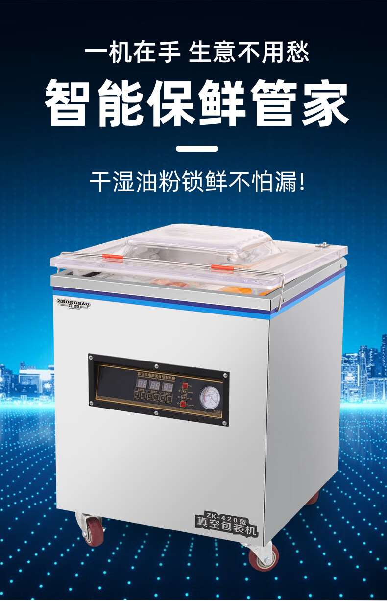 Zhongbao vacuum sealing machine commercial fully automatic food large packaging machine vacuum sealing machine vacuum preservation plastic sealing machine 420 luxury type - 20L industrial large pump - dry and wet oil powder