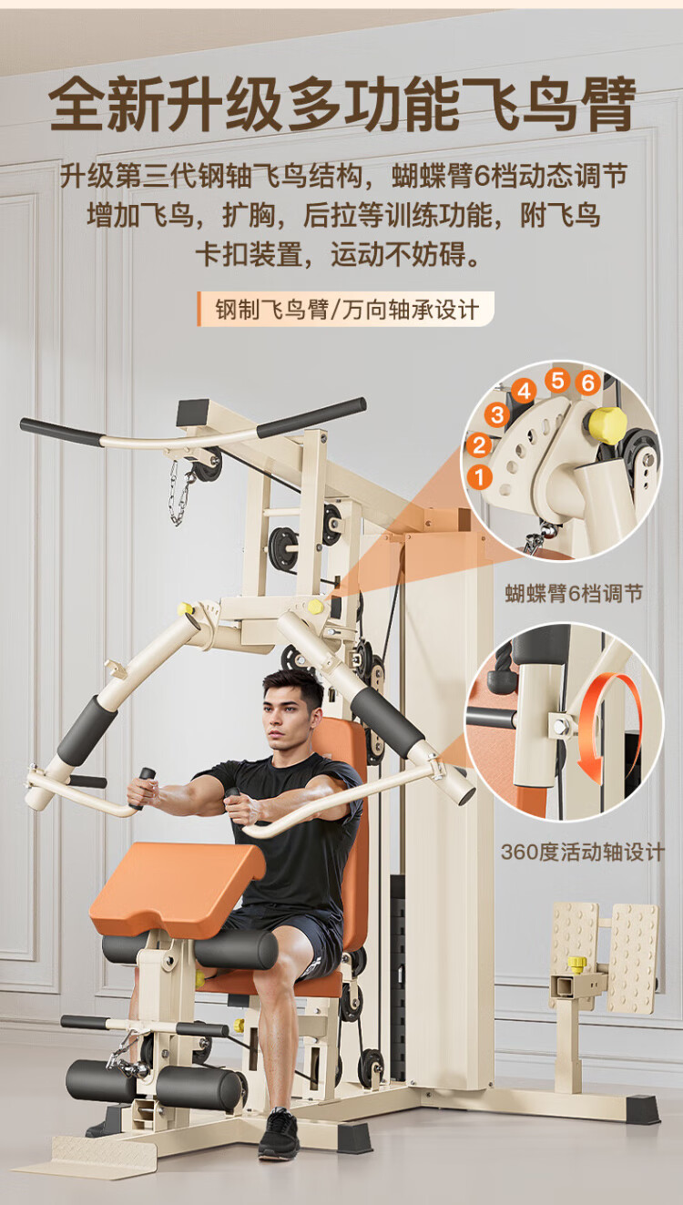 Meride fitness equipment multi-functional all-in-one home comprehensive trainer Feiyang single station indoor strength exercise equipment leg kick + upgraded Feiya + 6-speed butterfly arm milk coffee color delivered upstairs + installation included