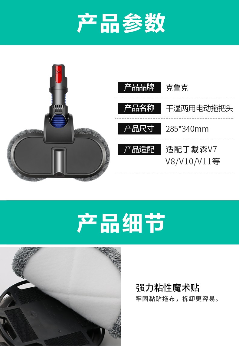 Crooke adapts to Dyson vacuum cleaner mop brush head suction and mopping integrated floor wiping wet sprinkle mop cleaning accessories V6/DC series electric mop head water tank model