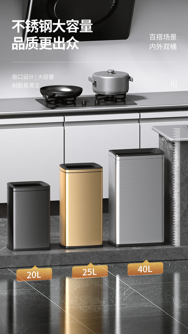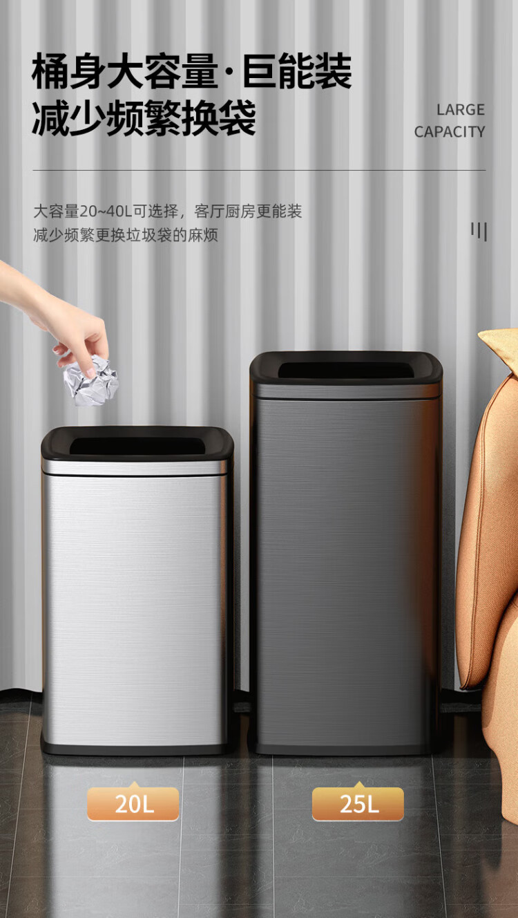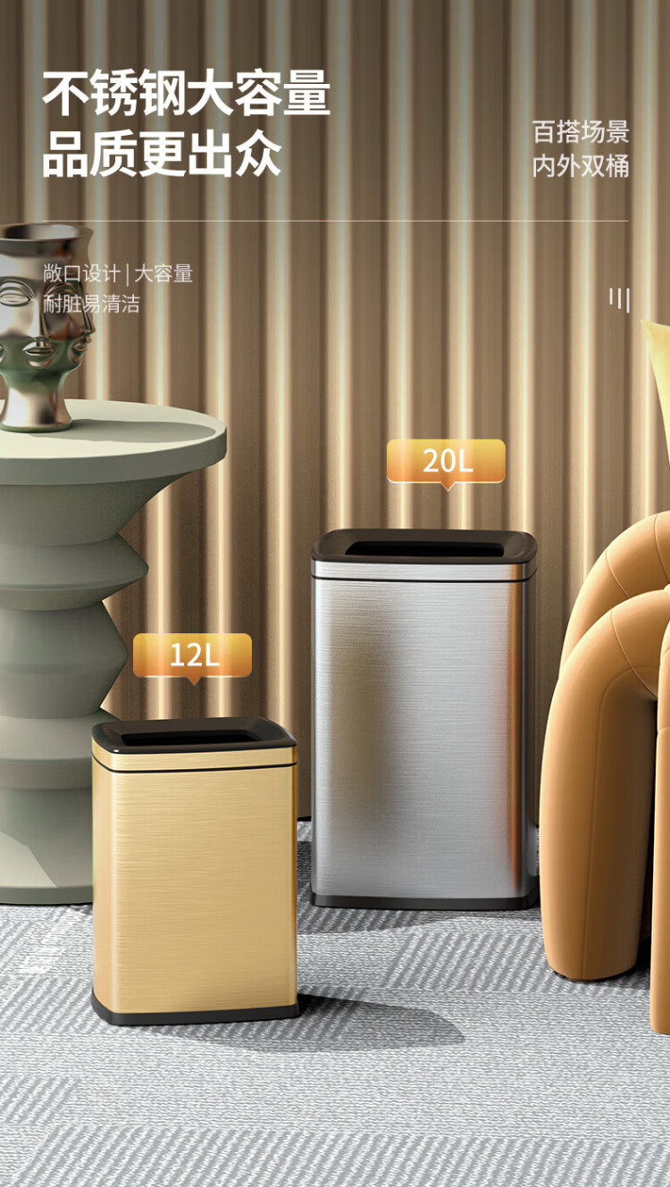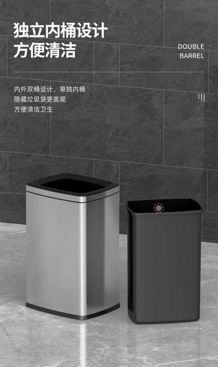 Jinke stainless steel lidless direct-throw garbage classification trash can large commercial trash can sanitation outdoor outdoor shopping mall property hotel lobby office building corridor 50L double classification without lid (25L+25L)