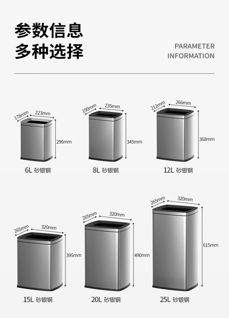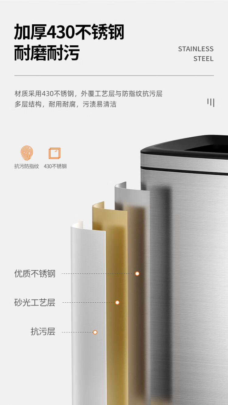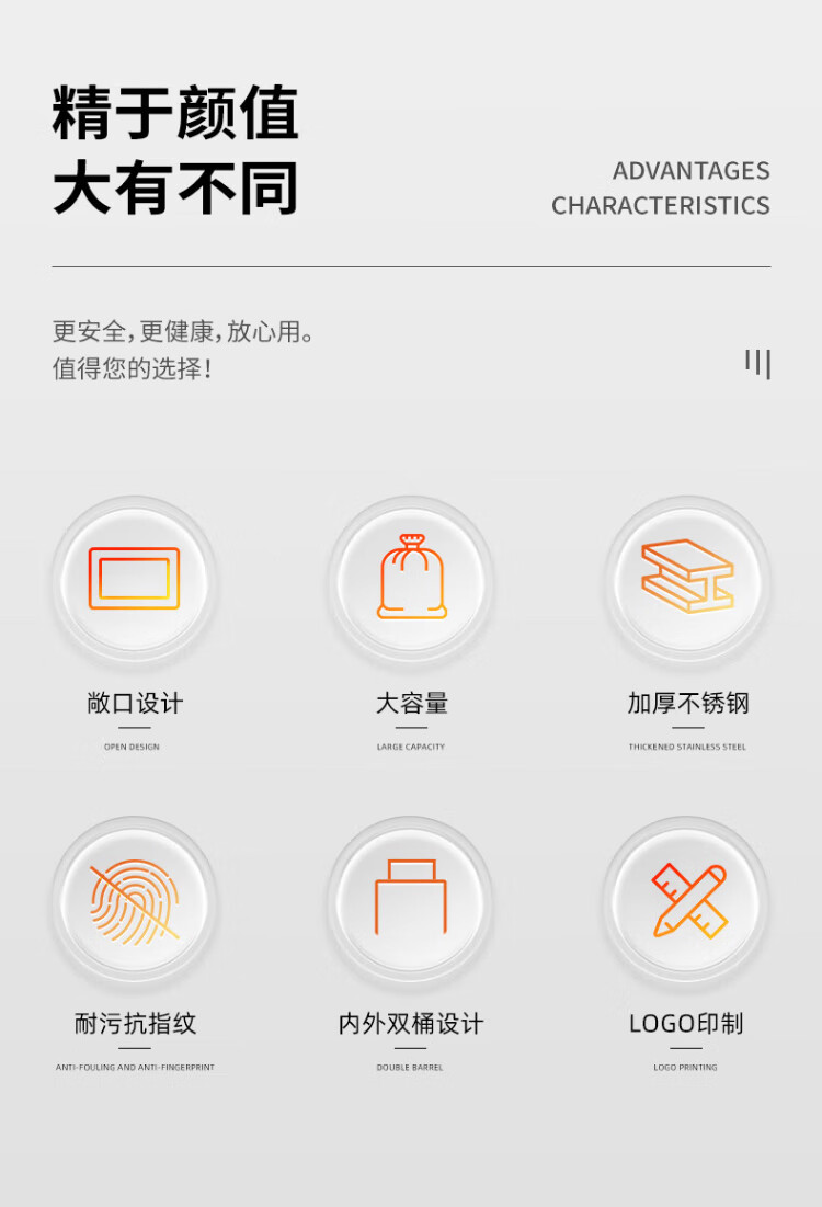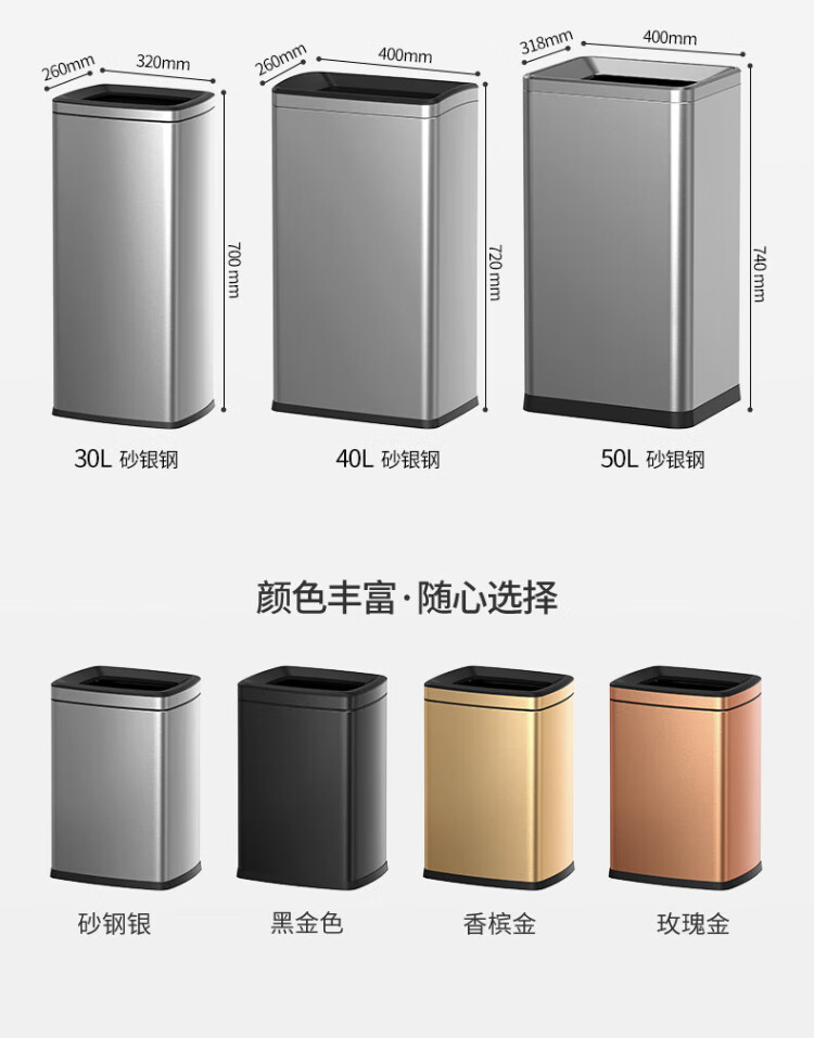 Jinke stainless steel lidless direct-throw garbage classification trash can large commercial trash can sanitation outdoor outdoor shopping mall property hotel lobby office building corridor 50L double classification without lid (25L+25L)
