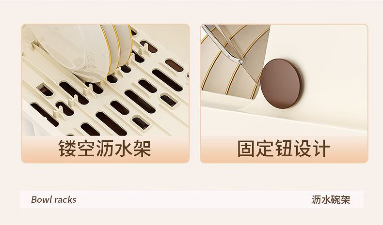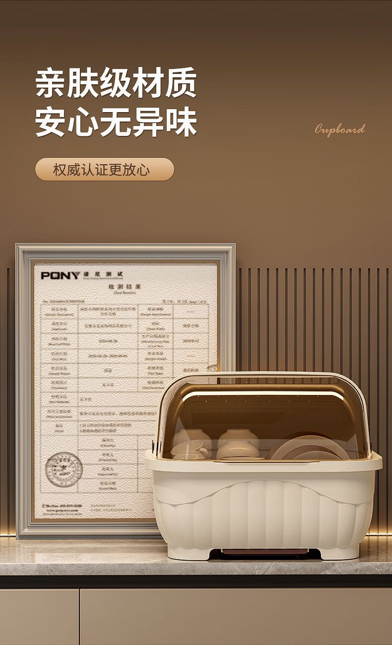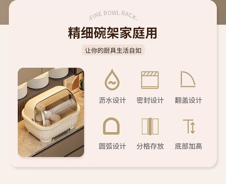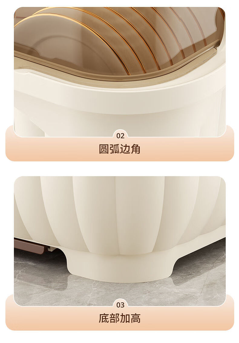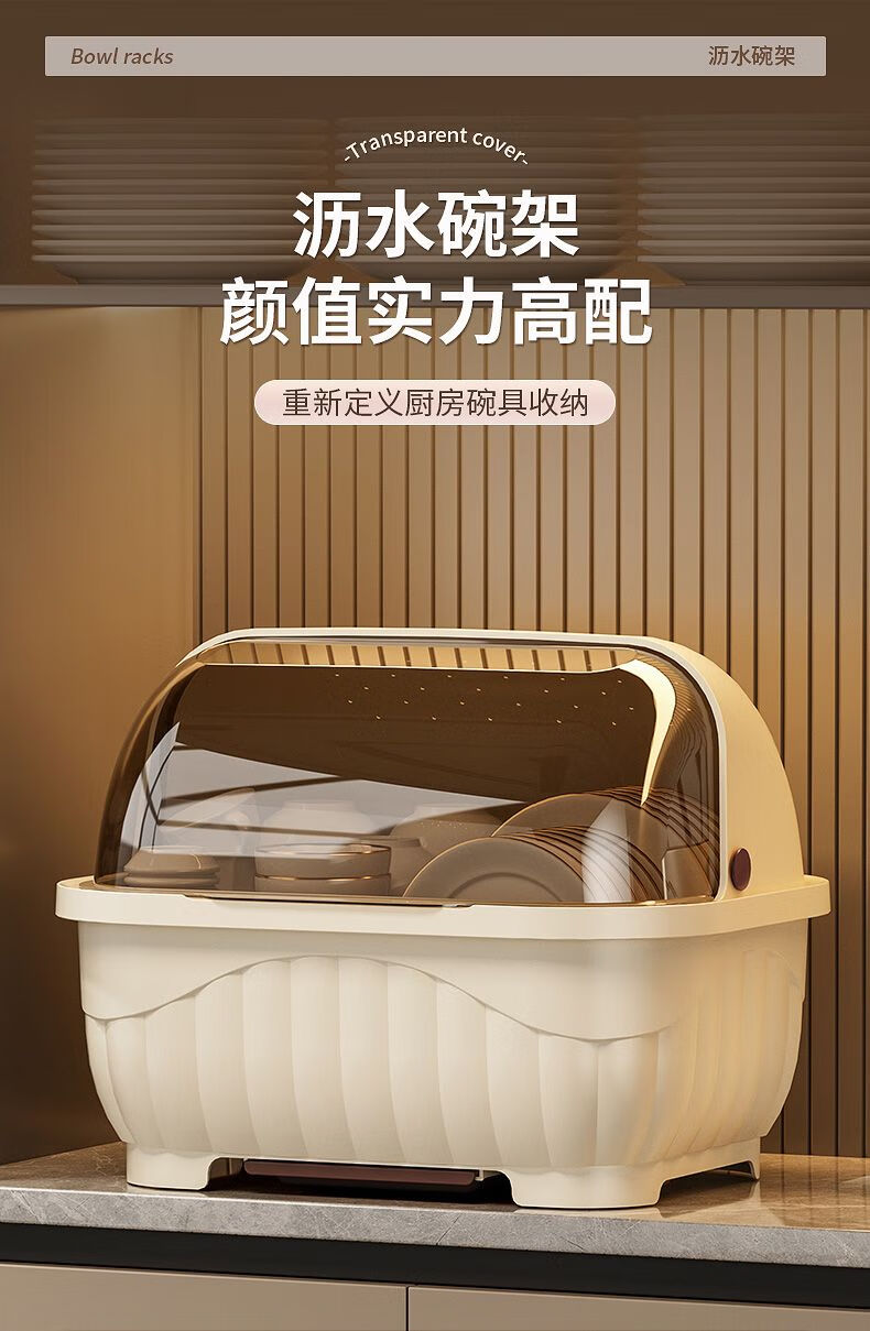 Popular model on the Internet Kitchen tableware storage box cupboard drawer-type storage rack with cover for dishes and dustproof food-grade bottle material 34*26*26cm cream yellow can hold 12 bowls or 10 plates