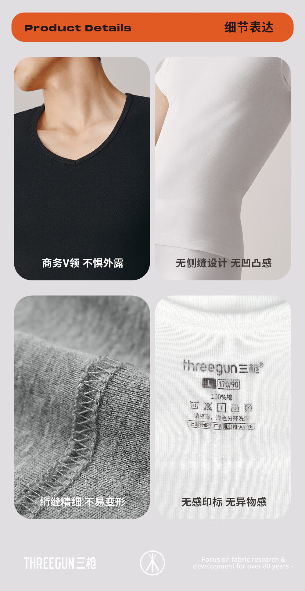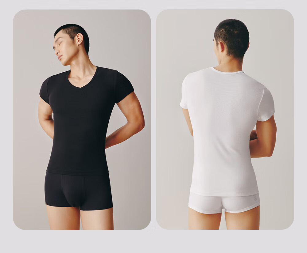 Sangun 2-piece T-shirt men's bottoming shirt Xinjiang pure cotton elastic thin V-neck threaded knitted cotton men's short-sleeved white + gray slim version, if you like looseness, you can take a larger size L 170