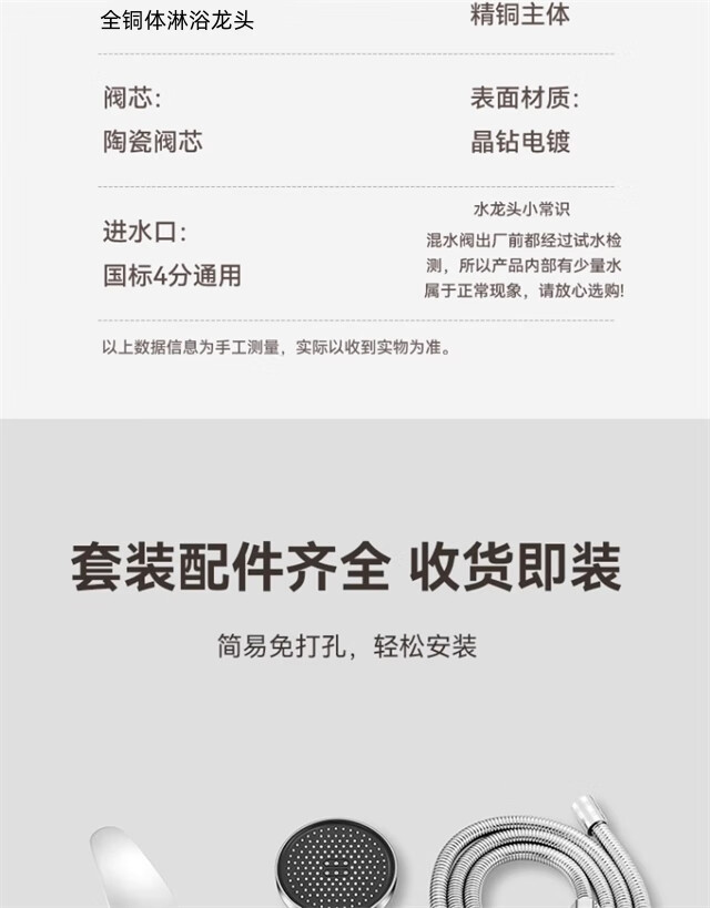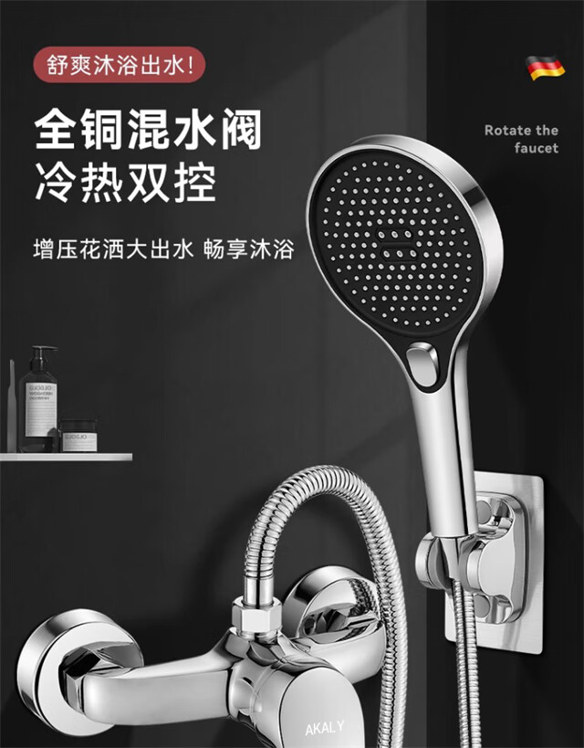 AKALY full copper body shower mixing valve hot and cold faucet bathroom bathtub water heater household shower set mixing valve alloy shower faucet set free wrench (with installation accessories)