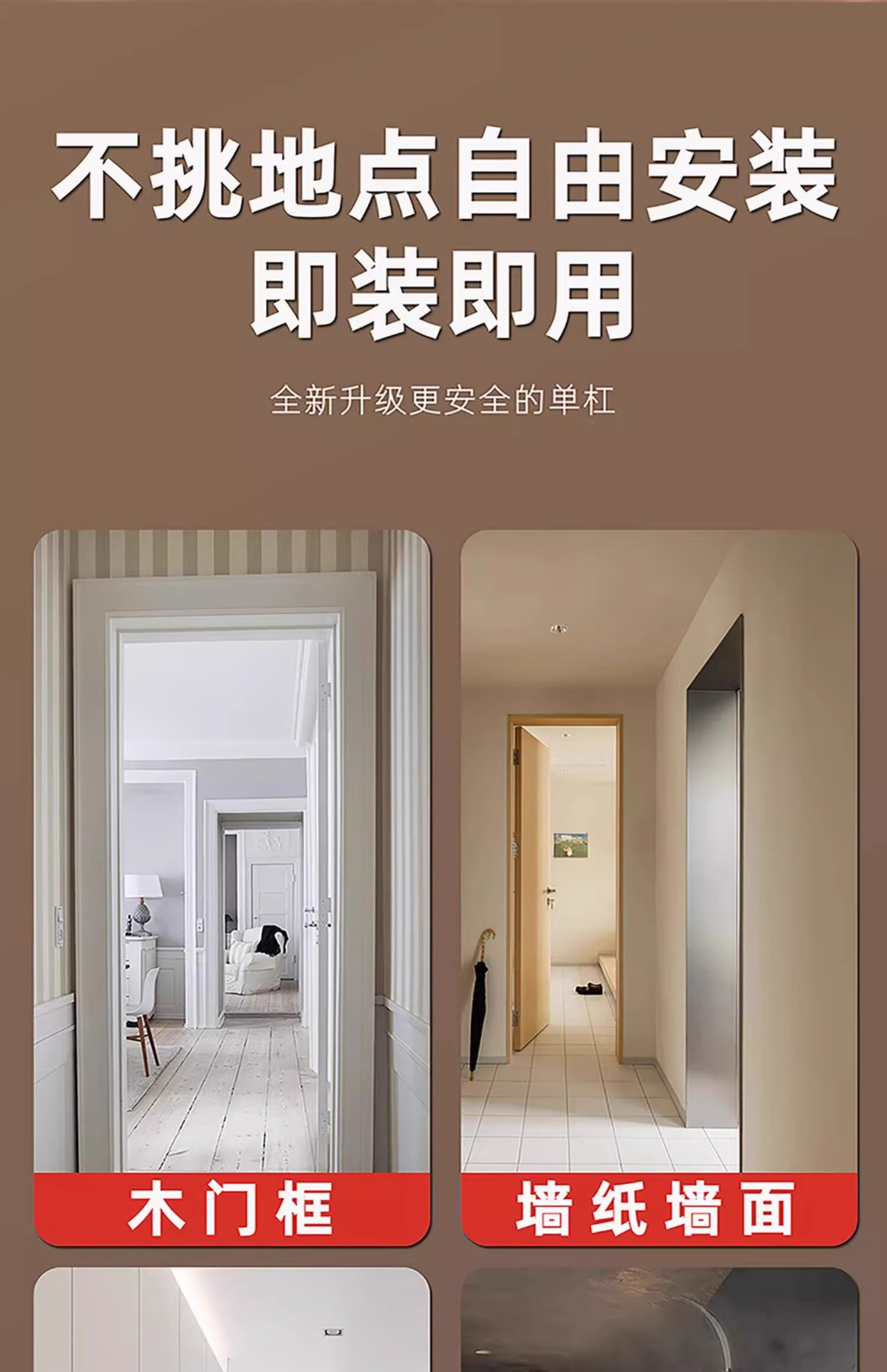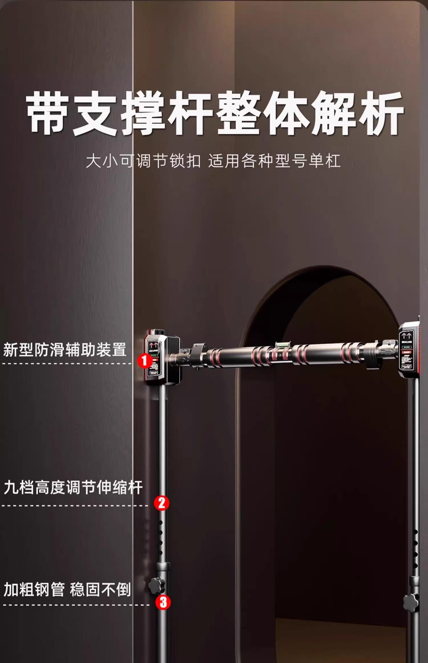 REXL horizontal bar pull-up device indoor home punch-free door home door frame student junior high school student high school entrance examination hanging lever 65-90cm wall distance installation-floor support