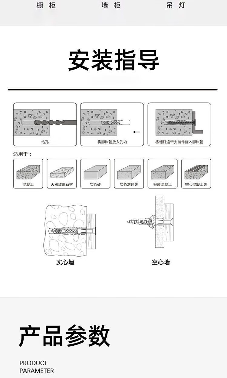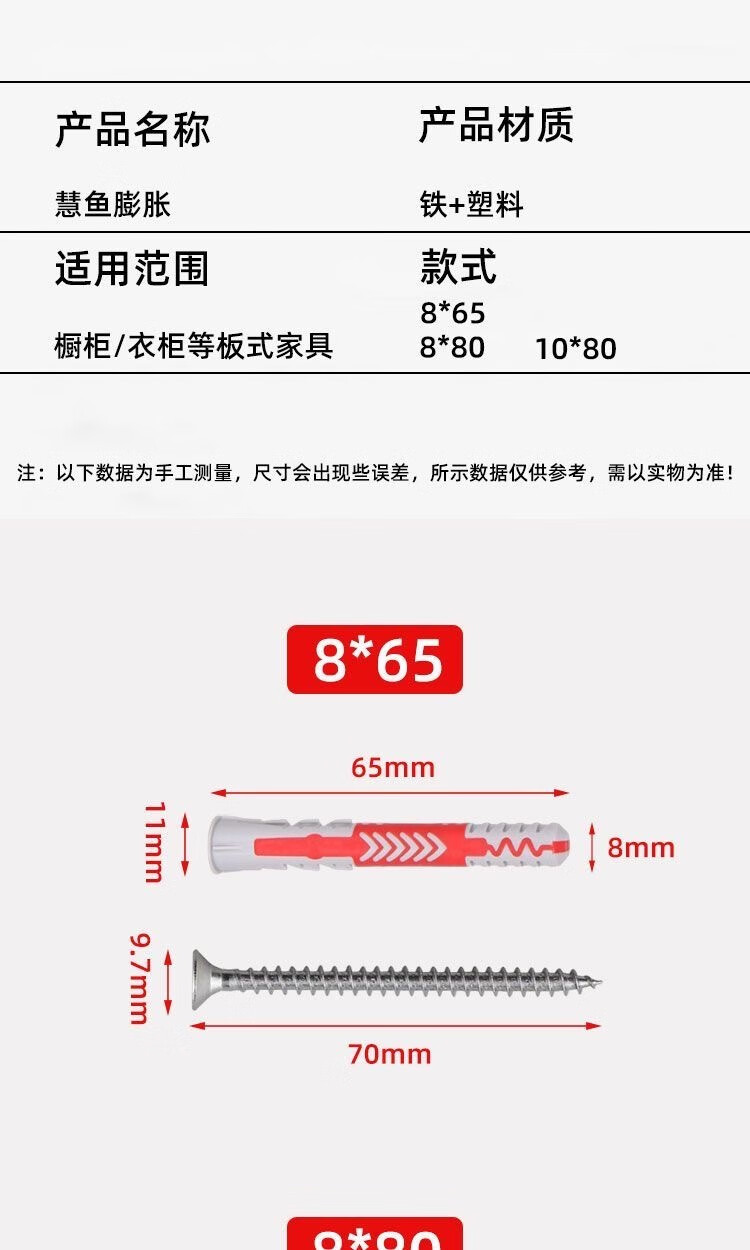 Qinkai Fischer expansion screw TV cabinet bracket wall cabinet gypsum board hollow brick wall special expansion tube bolt extension rod 8*65 cross head screws 20 sets
