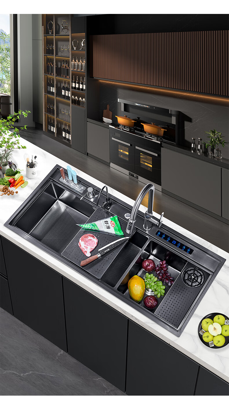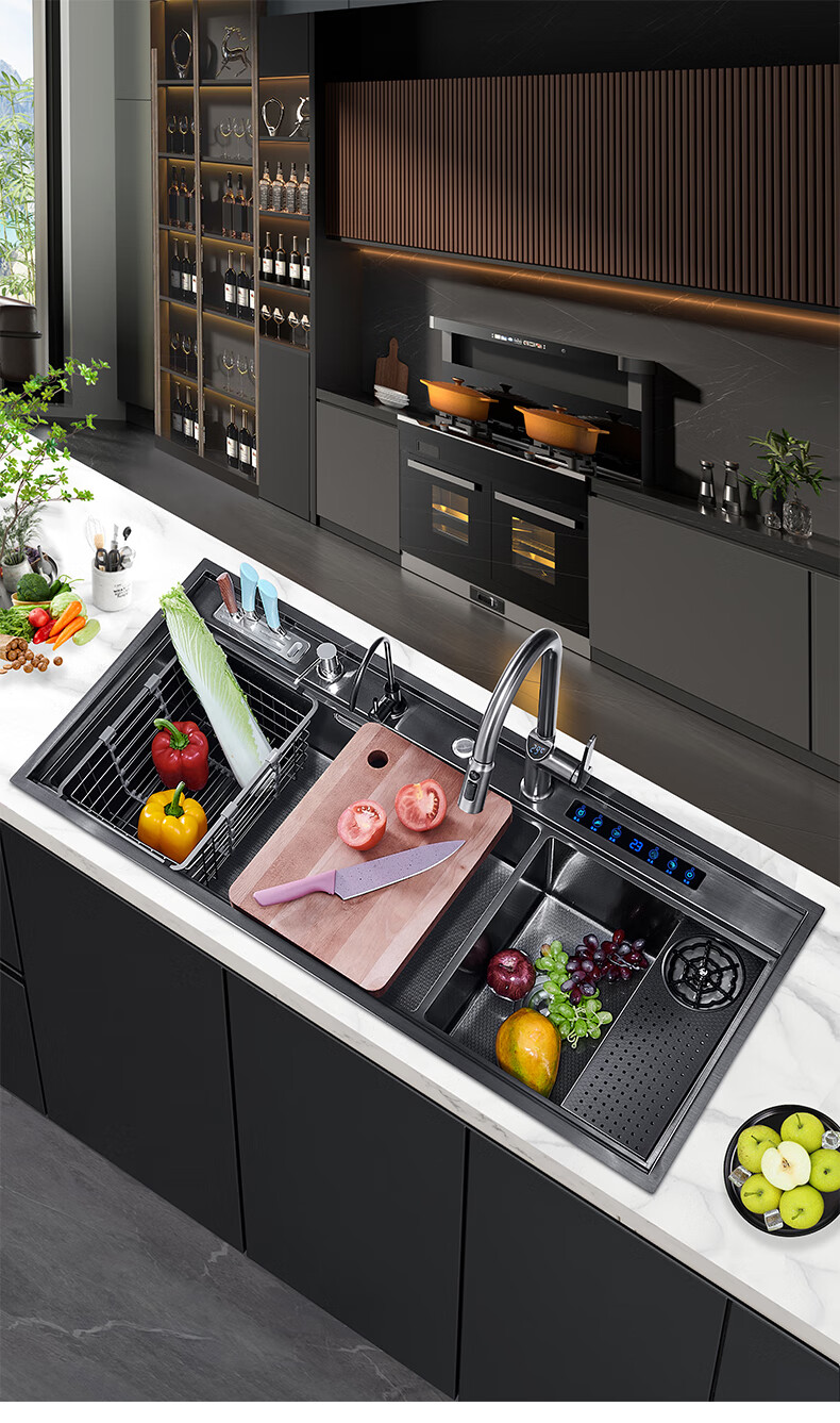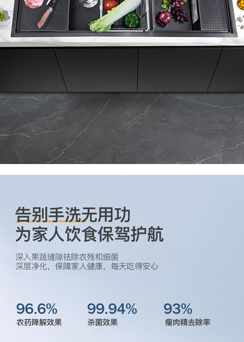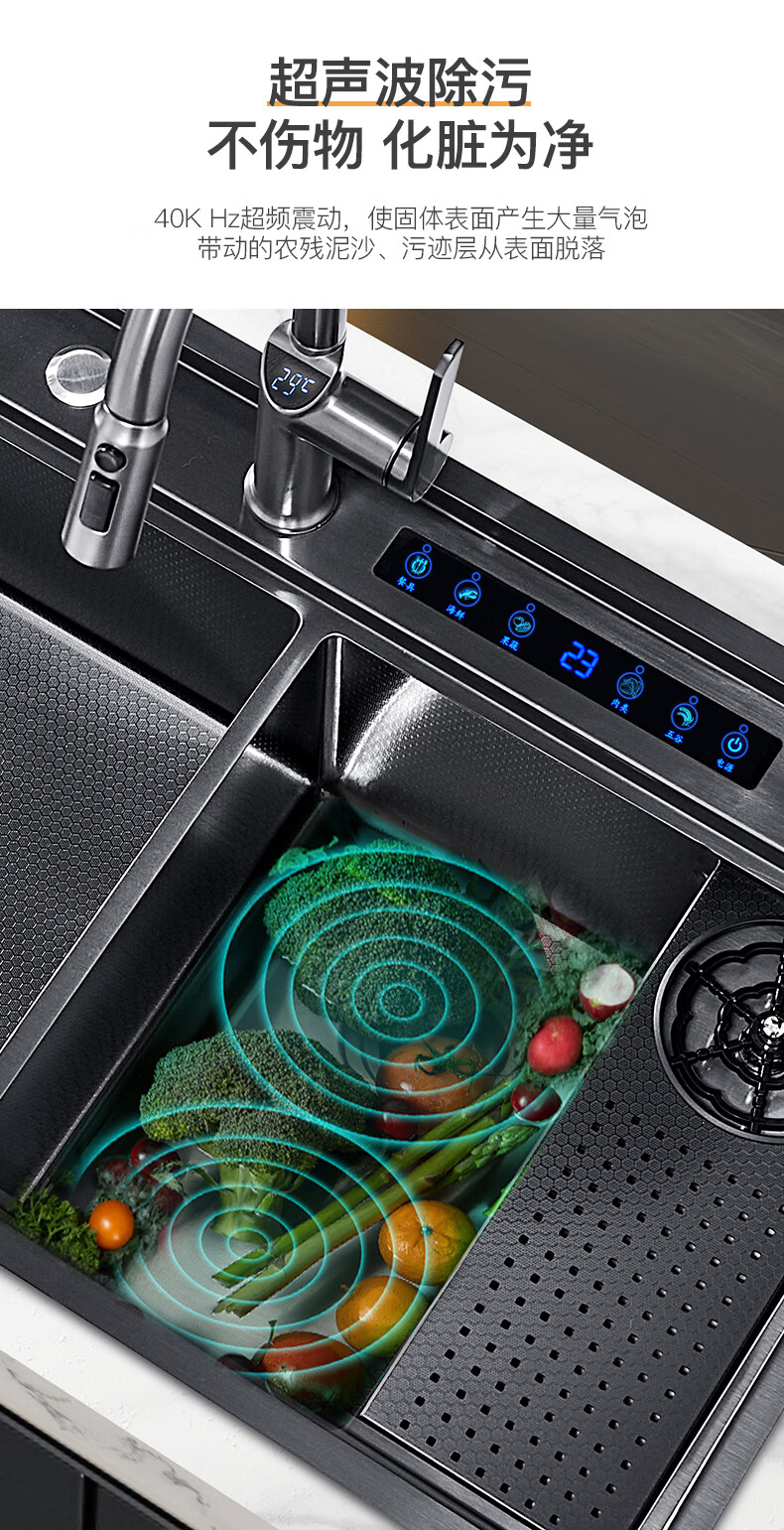 Pupan Intelligent Purification Sink Kitchen Ultrasonic Cleaning Fruit and Vegetable Removal Pesticide Residues Large Single Slot Multifunctional Double Slot Vegetable Basin A8450 Ultrasonic + Purification Double Slot/Defrost Board/Line