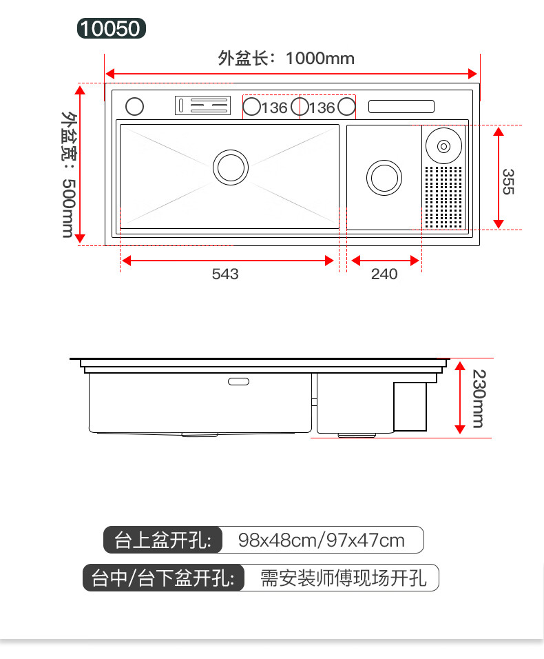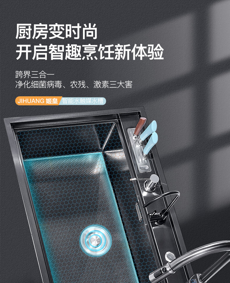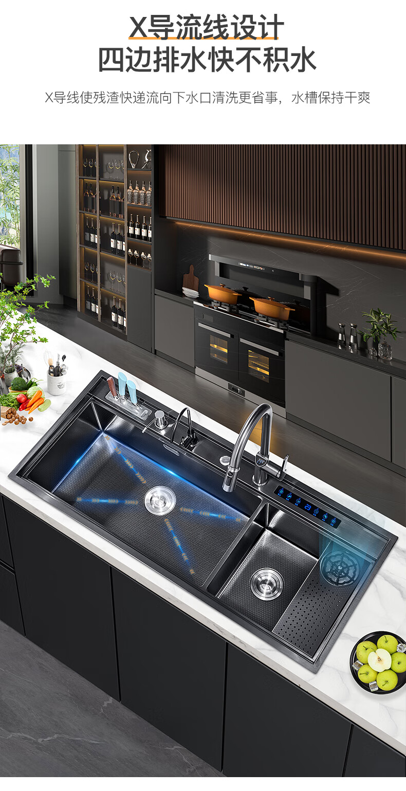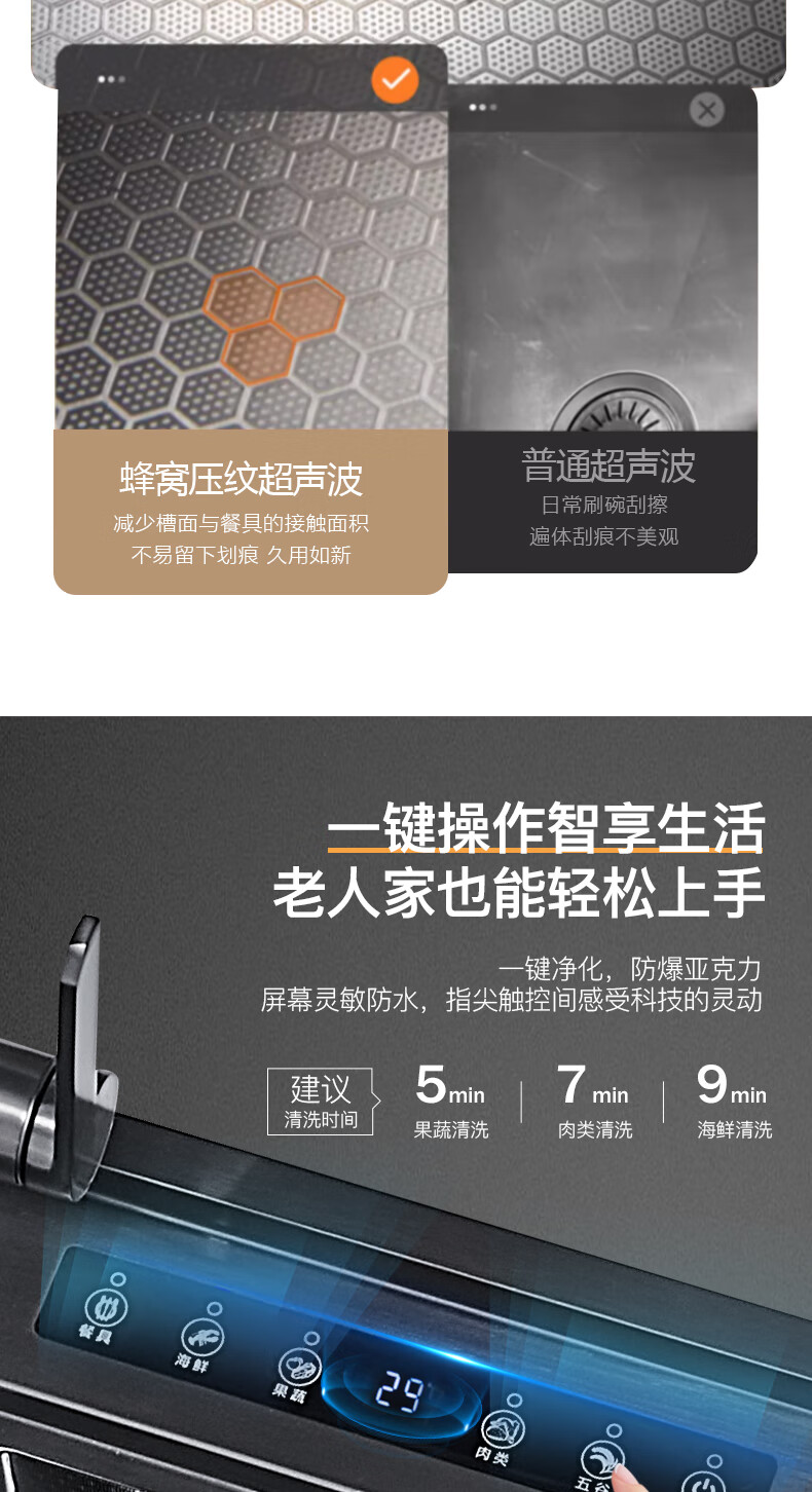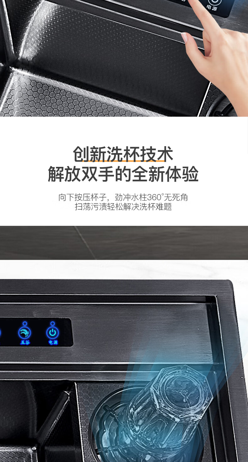 Pupan Intelligent Purification Sink Kitchen Ultrasonic Cleaning Fruit and Vegetable Removal Pesticide Residues Large Single Slot Multifunctional Double Slot Vegetable Basin A8450 Ultrasonic + Purification Double Slot/Defrost Board/Line