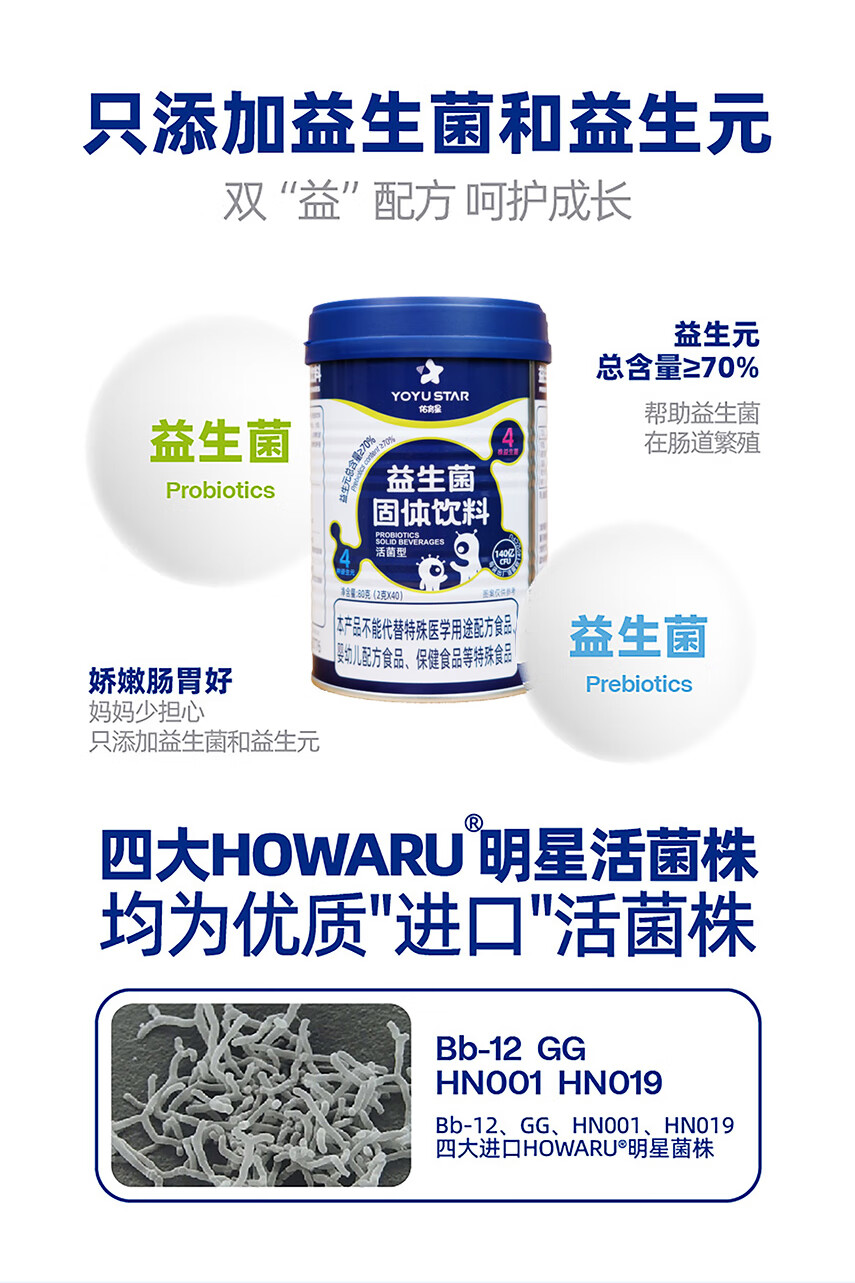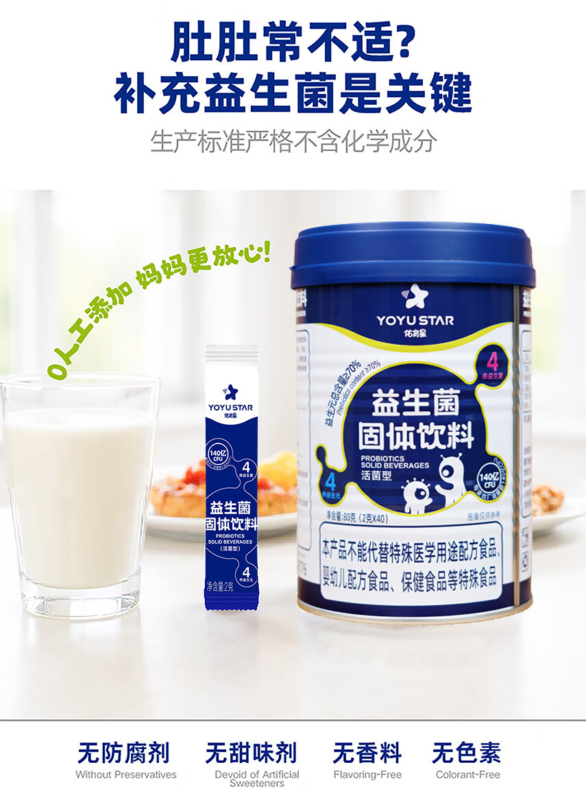 Youyuxing probiotics for infants and young children 0-12 years old, conditioning and added prebiotics gastrointestinal flora Bifidobacterium flatulence 2g*40 bags