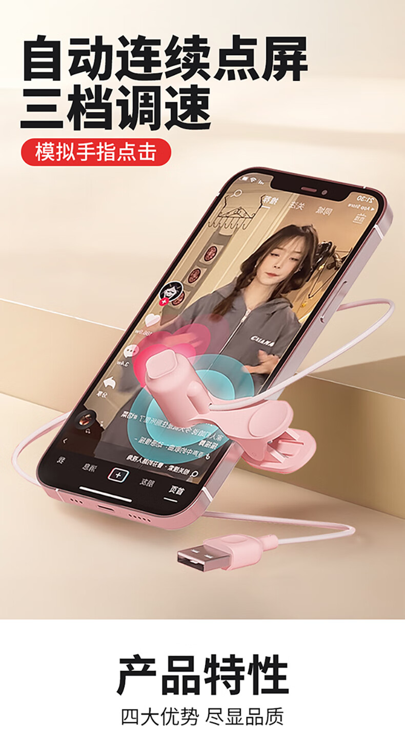 DOBOLY mobile phone screen clicker fully automatic click bracket device Douyin Kuaishou auxiliary physical simulation finger intelligent silent timing connector high-speed simulated finger screen clicker white USB