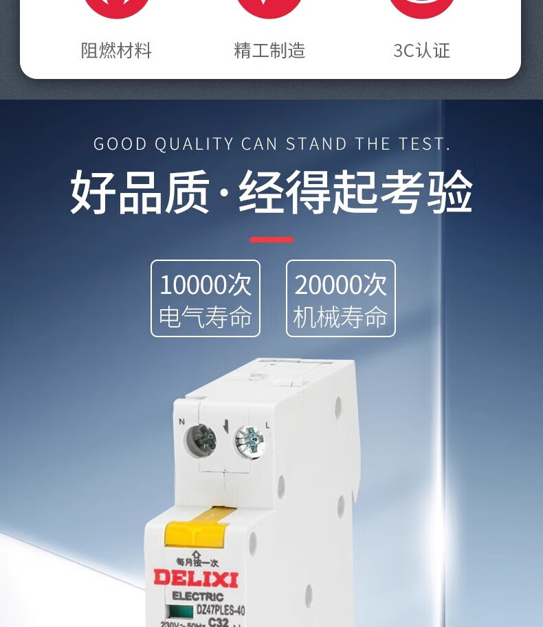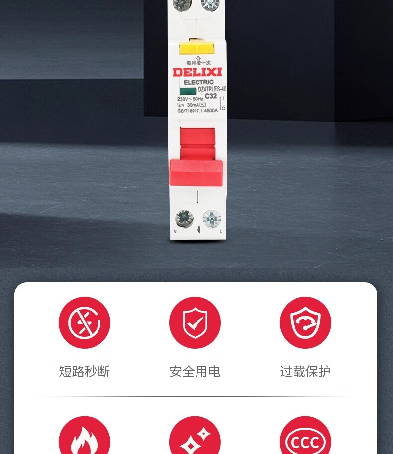 Delixi Electric Delixi DZ47PLES leakage protector 63a household 1P single chip single horse 32a air conditioning circuit breaker 25A 1P+N