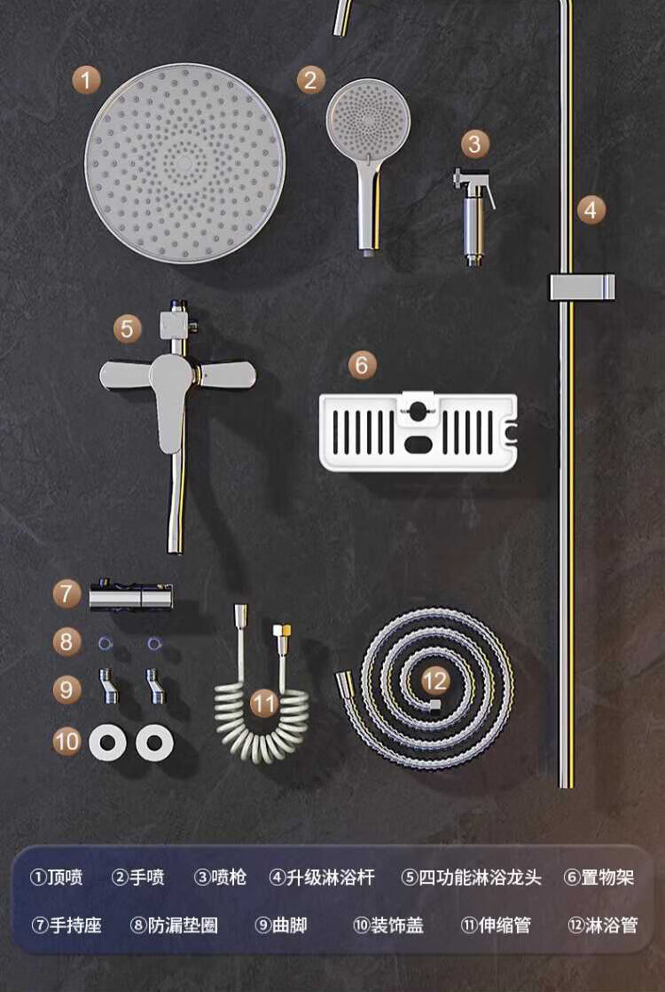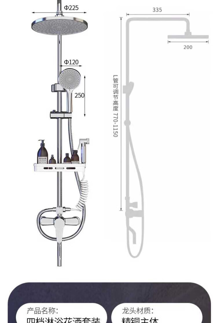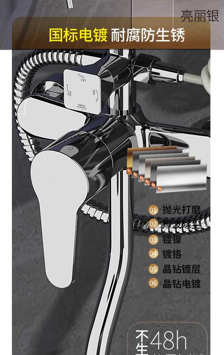 Breda shower head set home bathroom shower shower faucet three-piece set pressurized shower head bath set silver four-speed water outlet stainless steel set