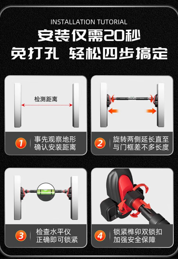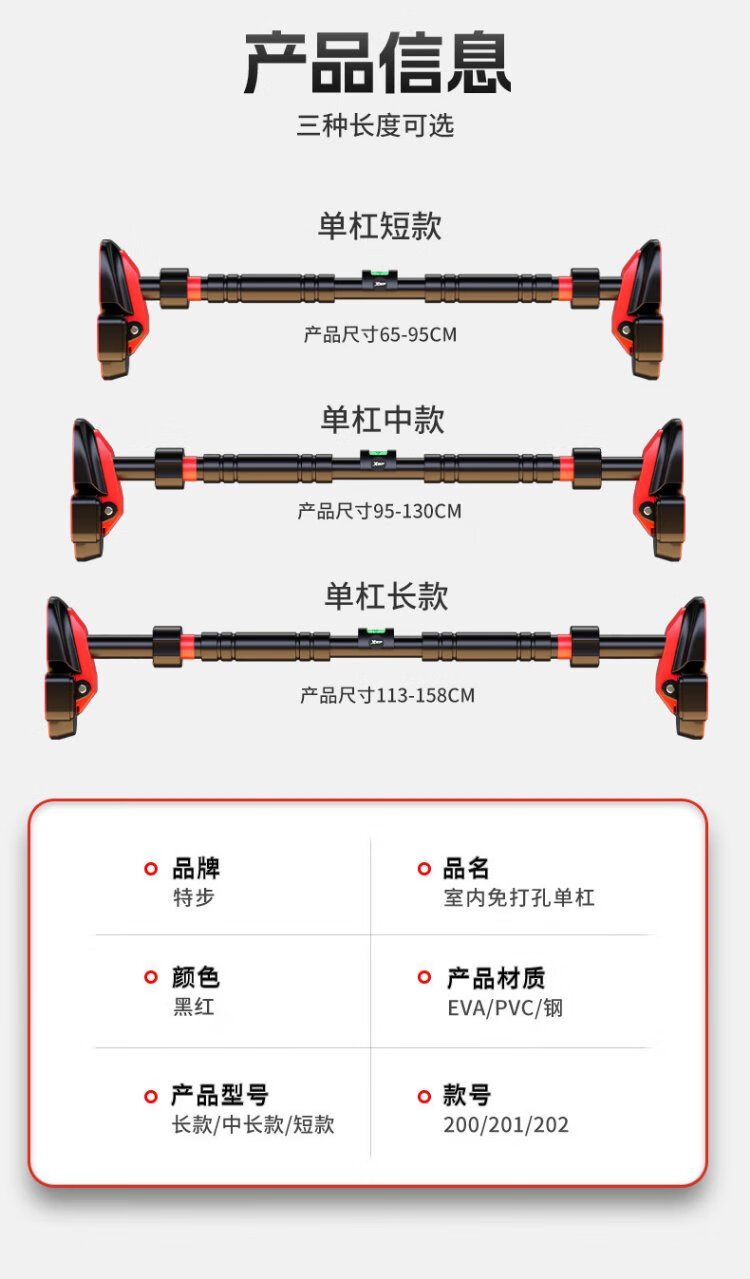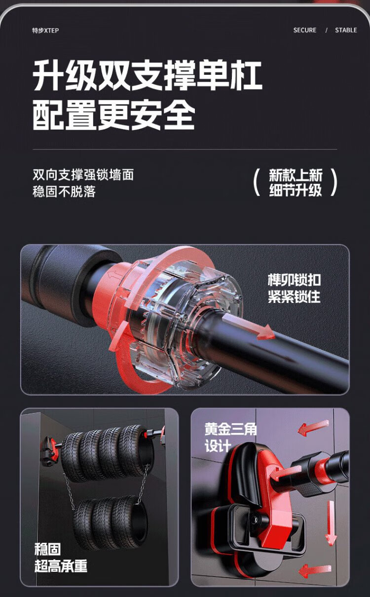 XTEP (XTEP) household horizontal bar indoor pull-up device for children and adults without punching on the door and wall fitness equipment sports boom upgraded four-leg anti-slip-Justable 95% recommended medium size 96-140CM safe load-bearing 0 slip/XTEP genuine guarantee