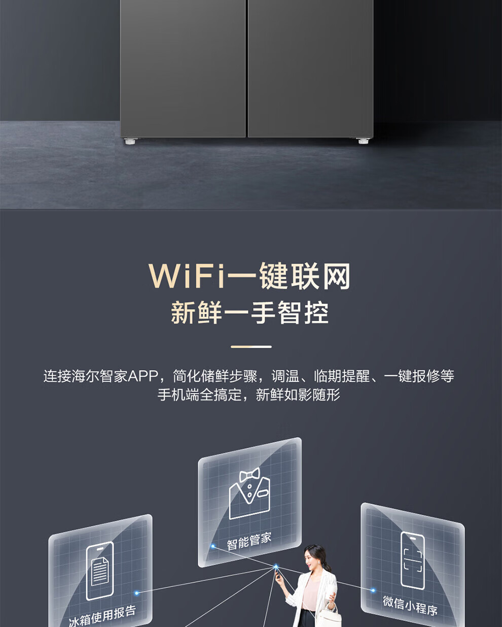 Haier refrigerator cross-door four-door 659 upgraded first-class energy efficiency dual-frequency air-cooled frost-free large-capacity household energy-saving refrigerator Boka Gray 25-year-old new product oxygen-blocking dry and wet storage + EPP purification system + WIFI intelligent control