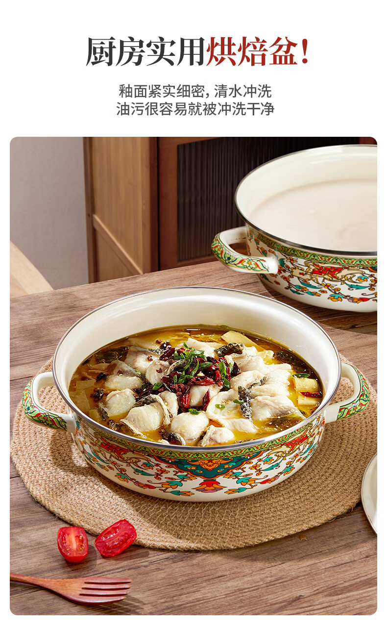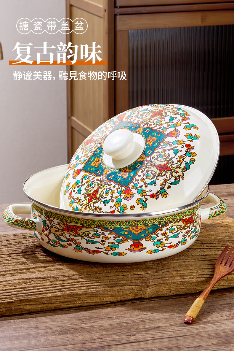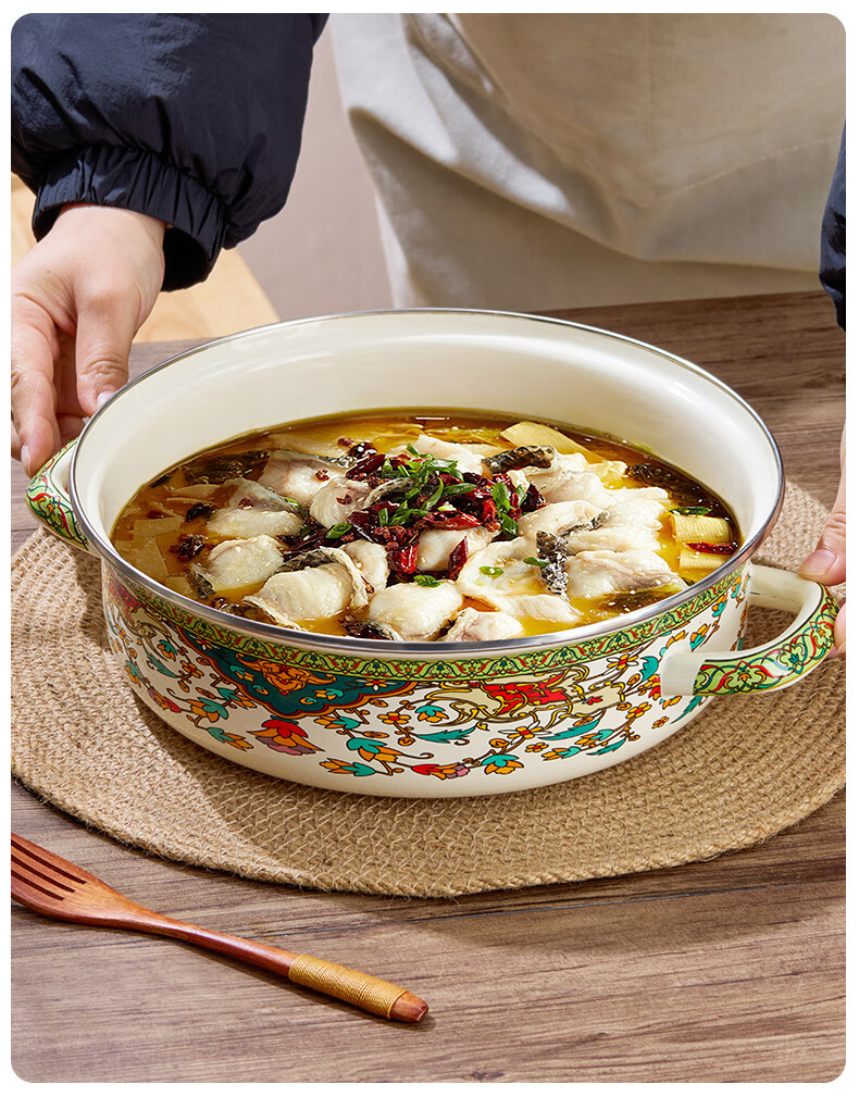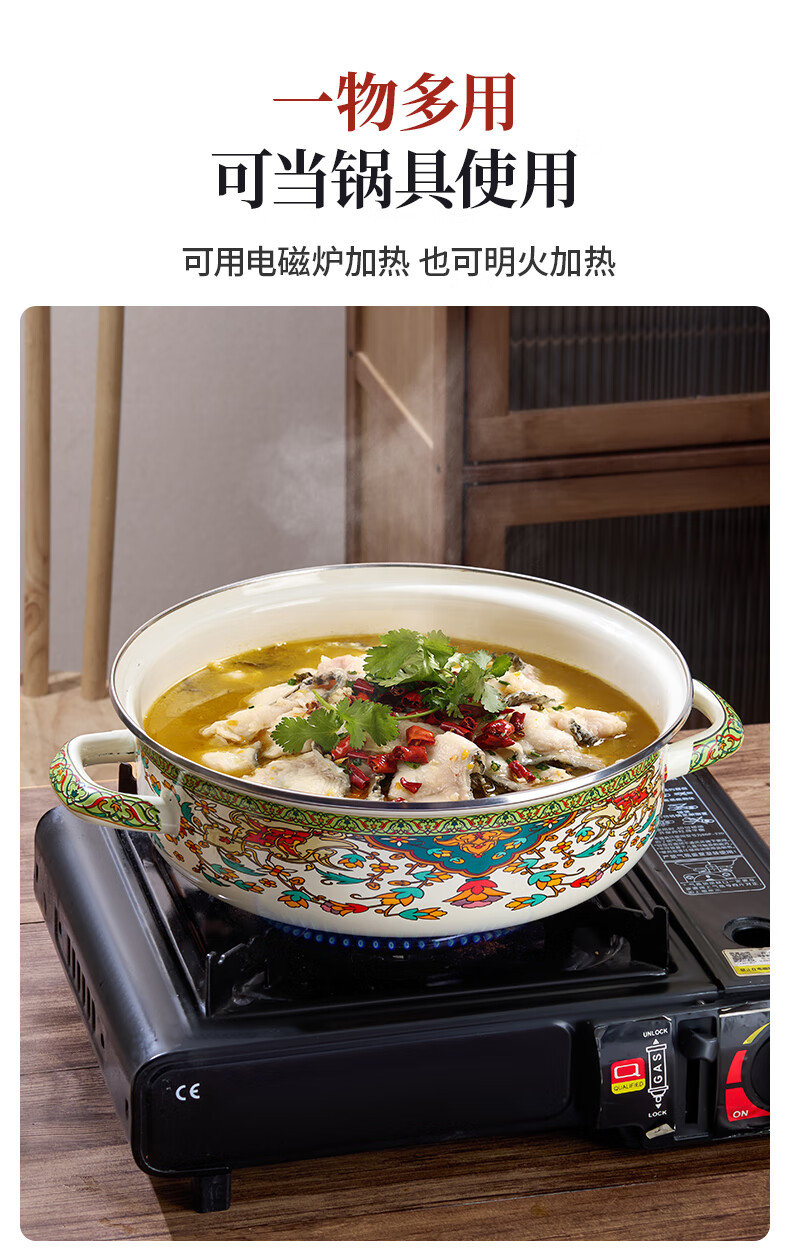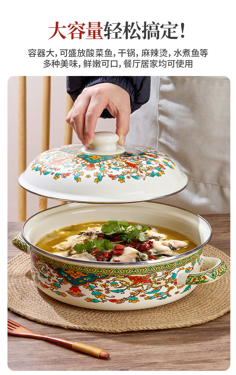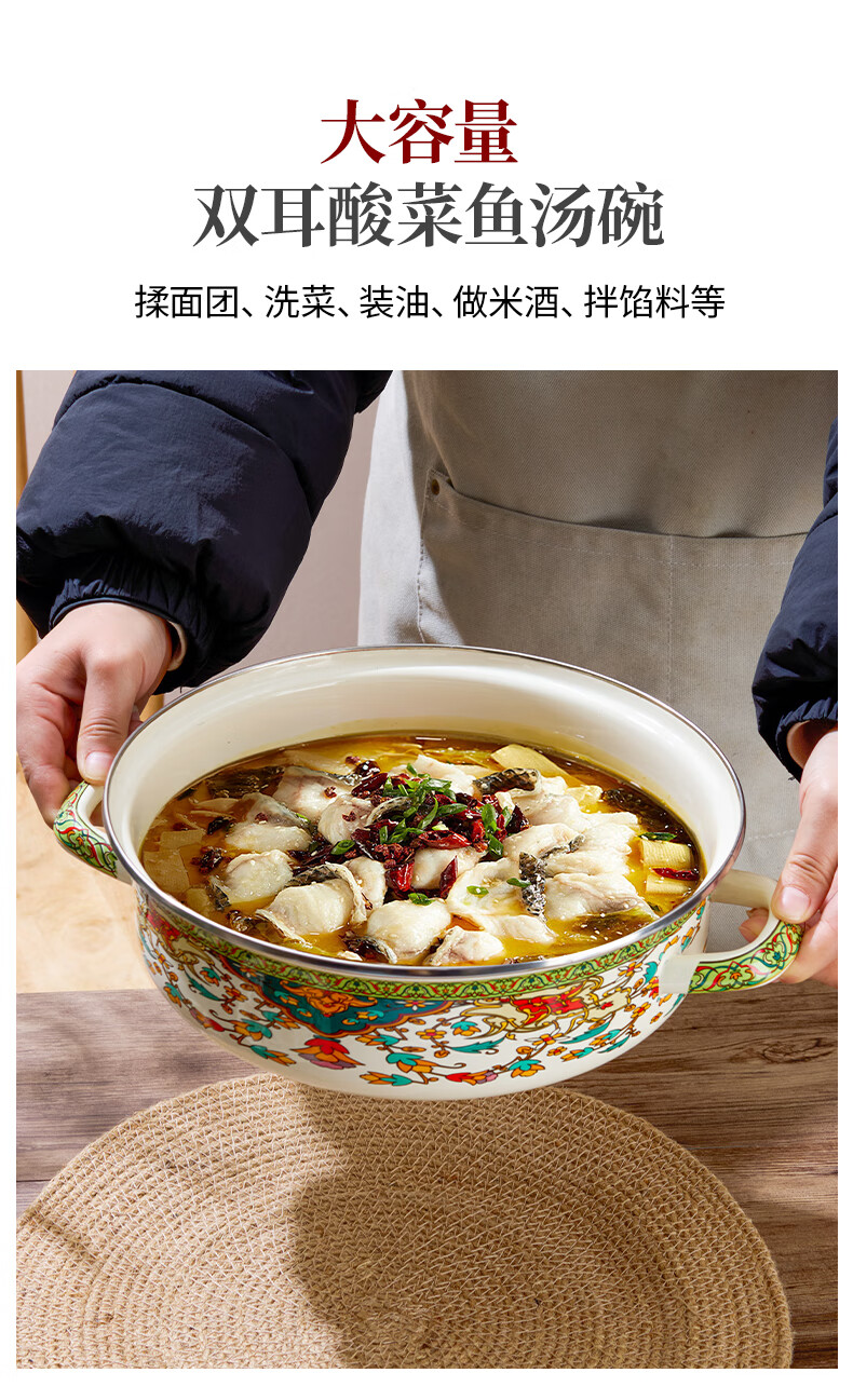Yupinjia enamel basin old-fashioned pickled fish basin with lid household binaural large boiled fish spicy soup bowl lard basin enamel pickled fish large basin bowl