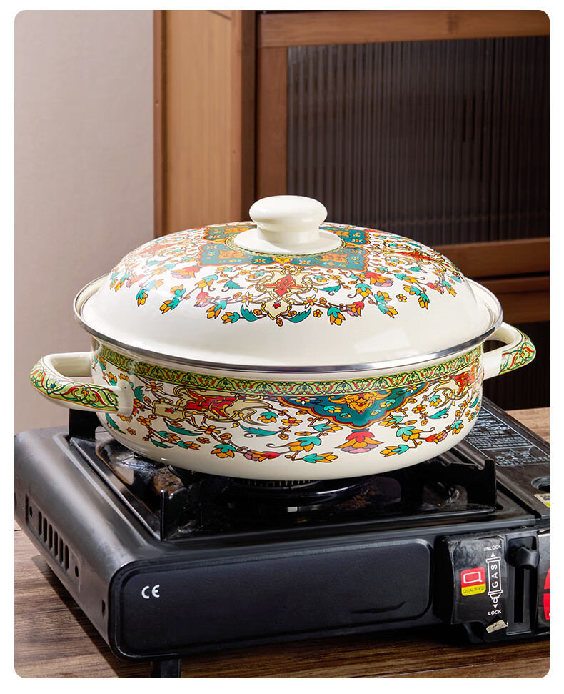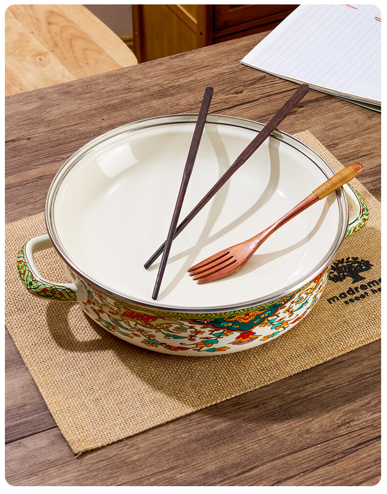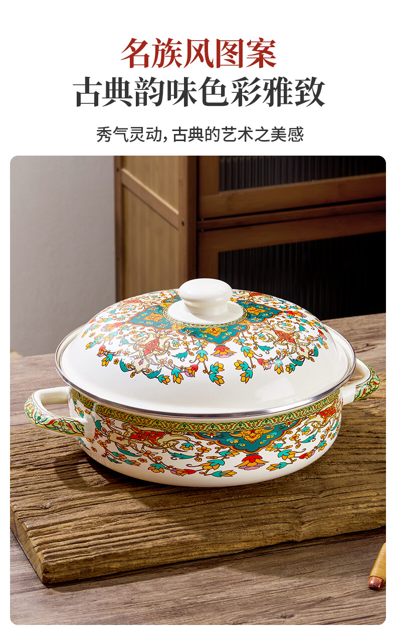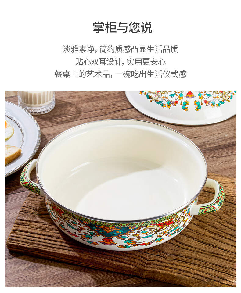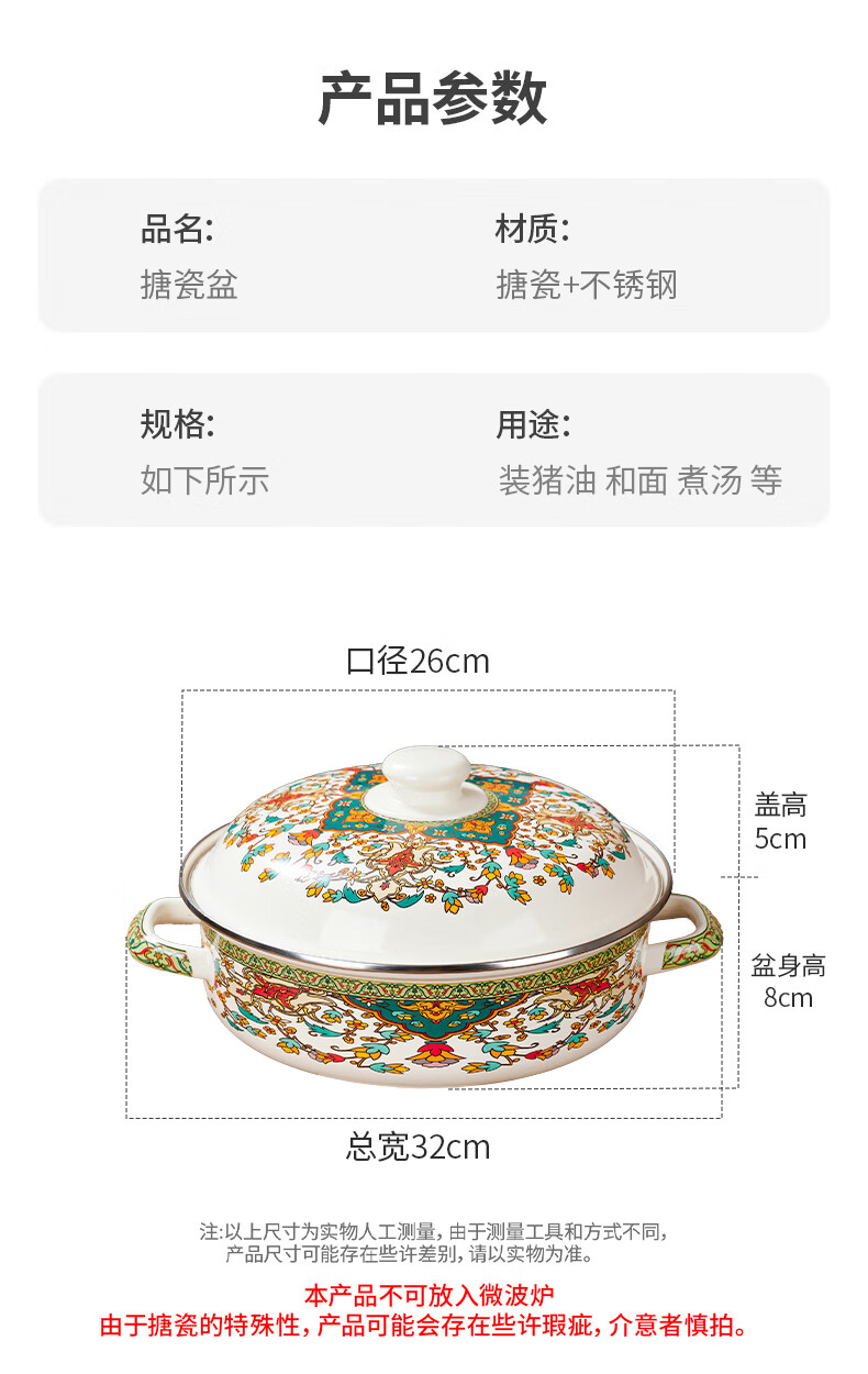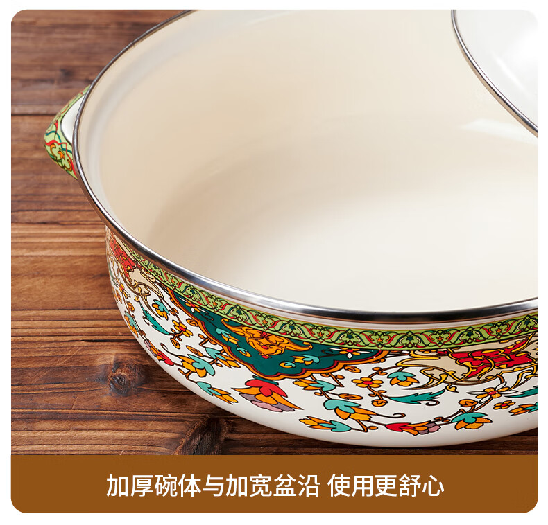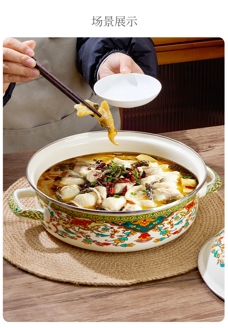 Yupinjia enamel basin old-fashioned pickled fish basin with lid household binaural large boiled fish spicy soup bowl lard basin enamel pickled fish large basin bowl