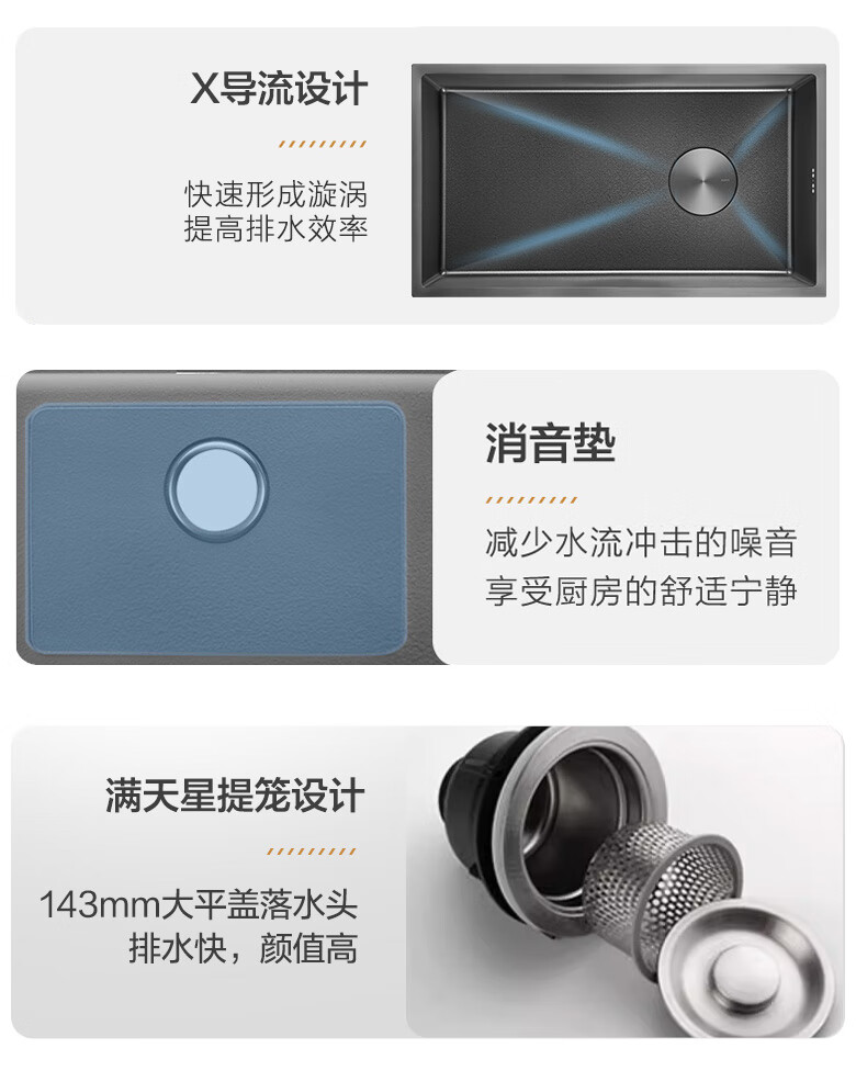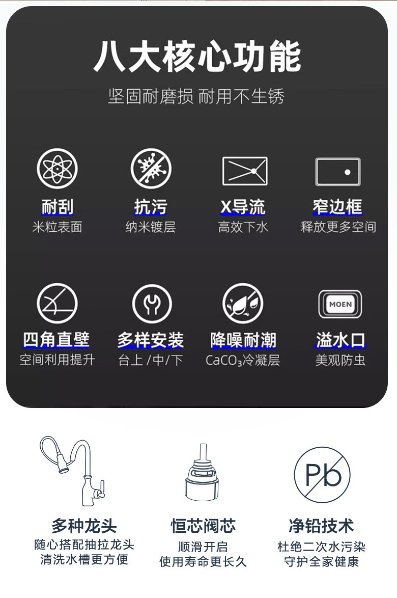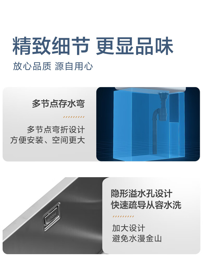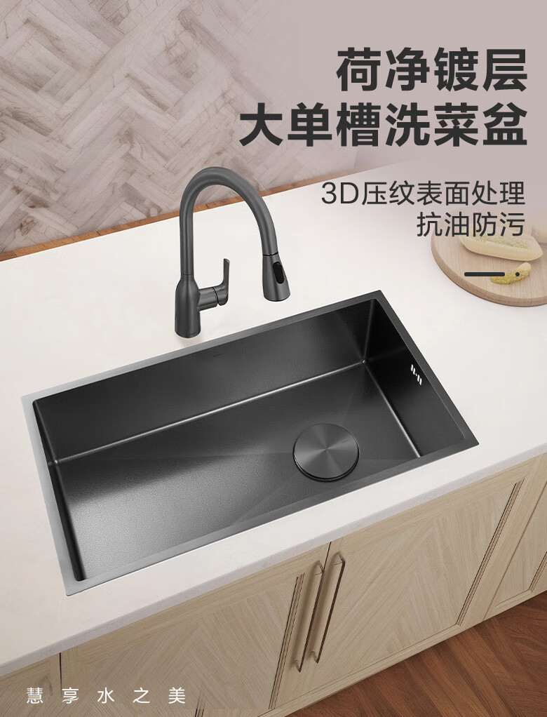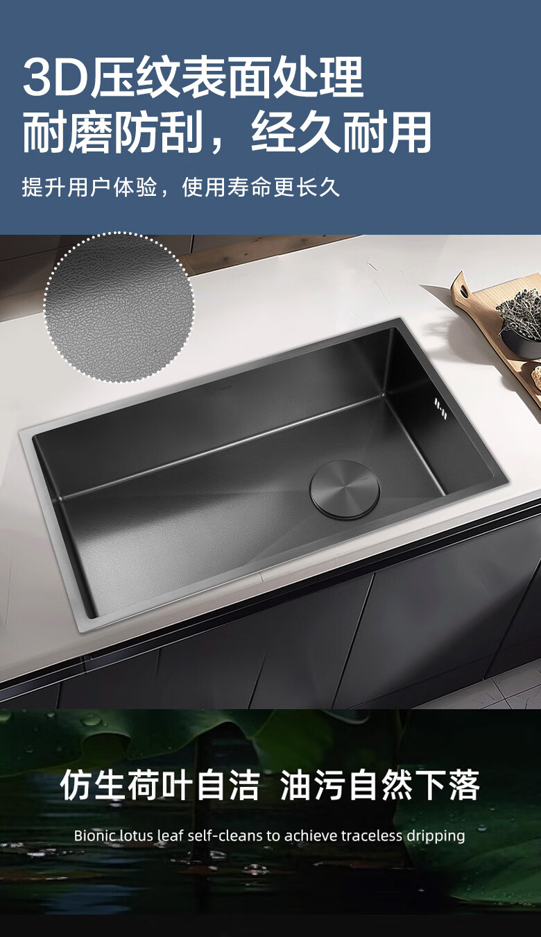 MOEN/Impression series 3D embossed handmade nano large single-slot 304 stainless steel kitchen sink vegetable basin SK65634LB 750*450*210MM