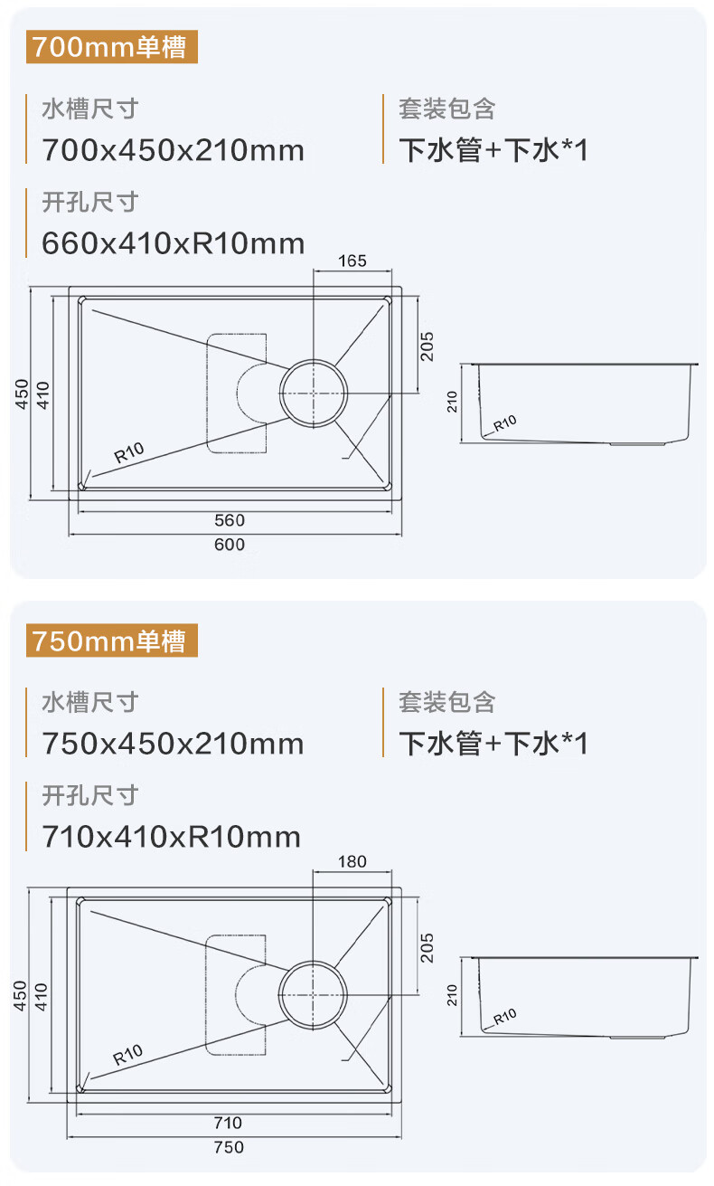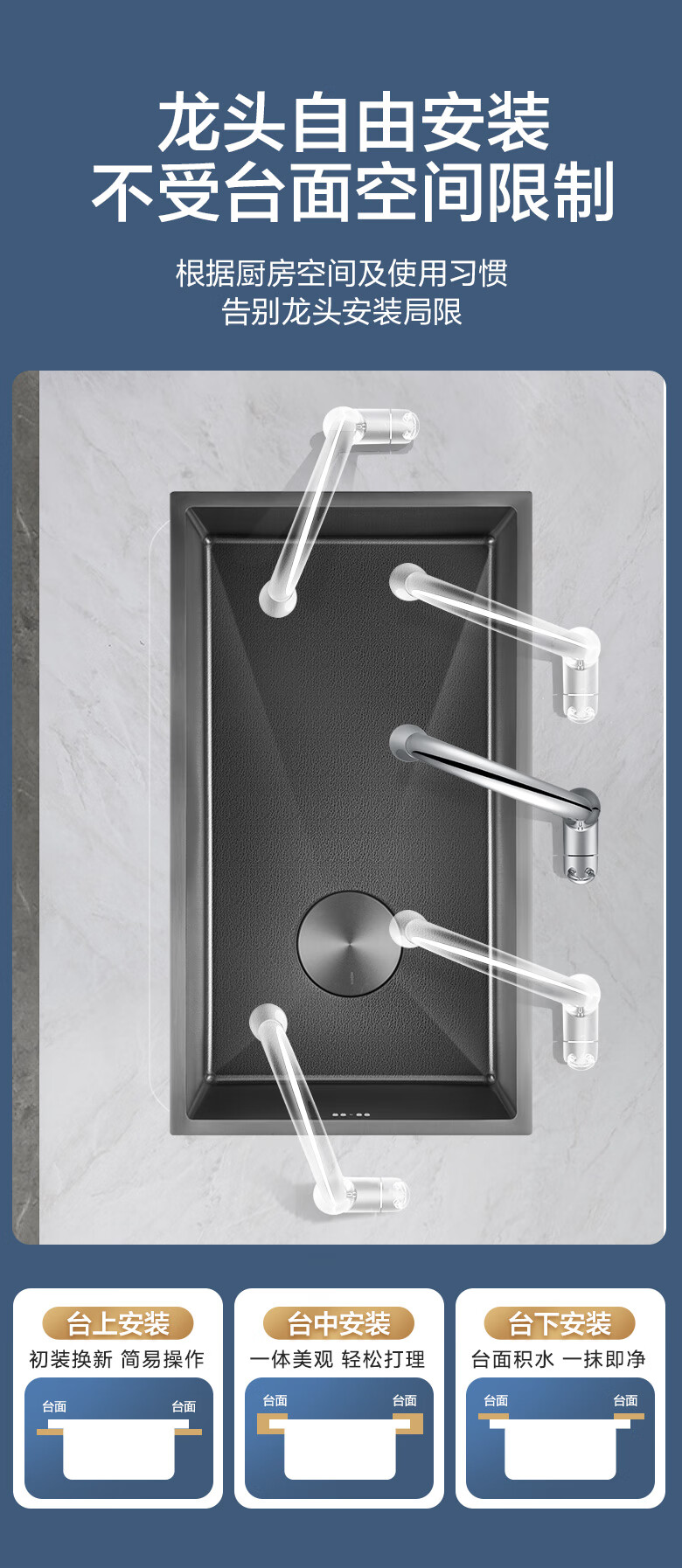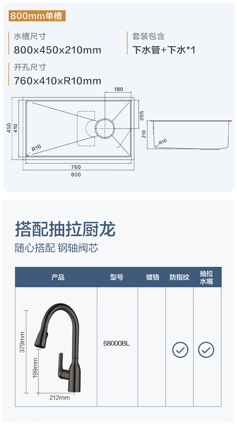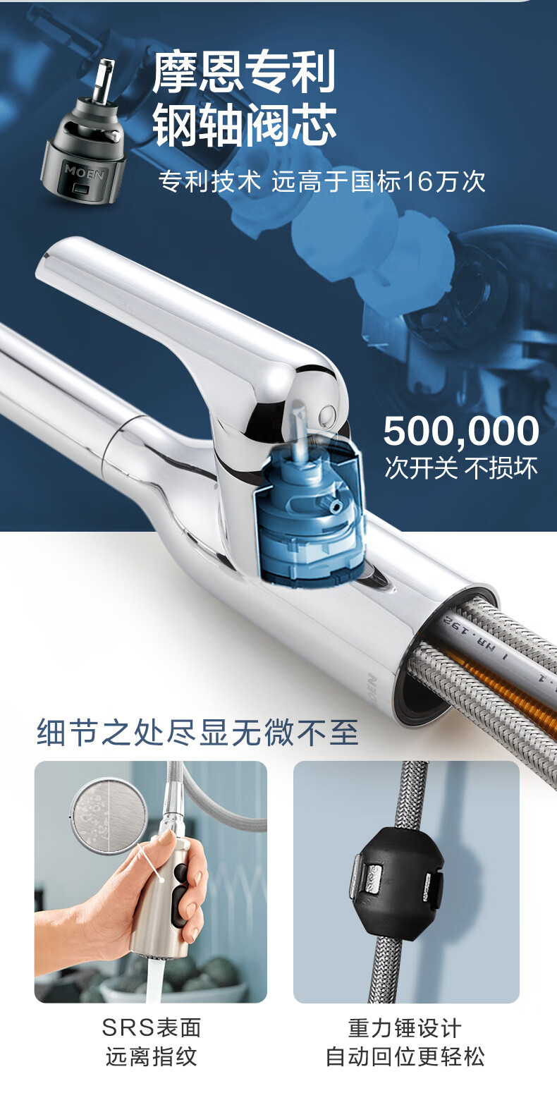 MOEN/Impression series 3D embossed handmade nano large single-slot 304 stainless steel kitchen sink vegetable basin SK65634LB 750*450*210MM