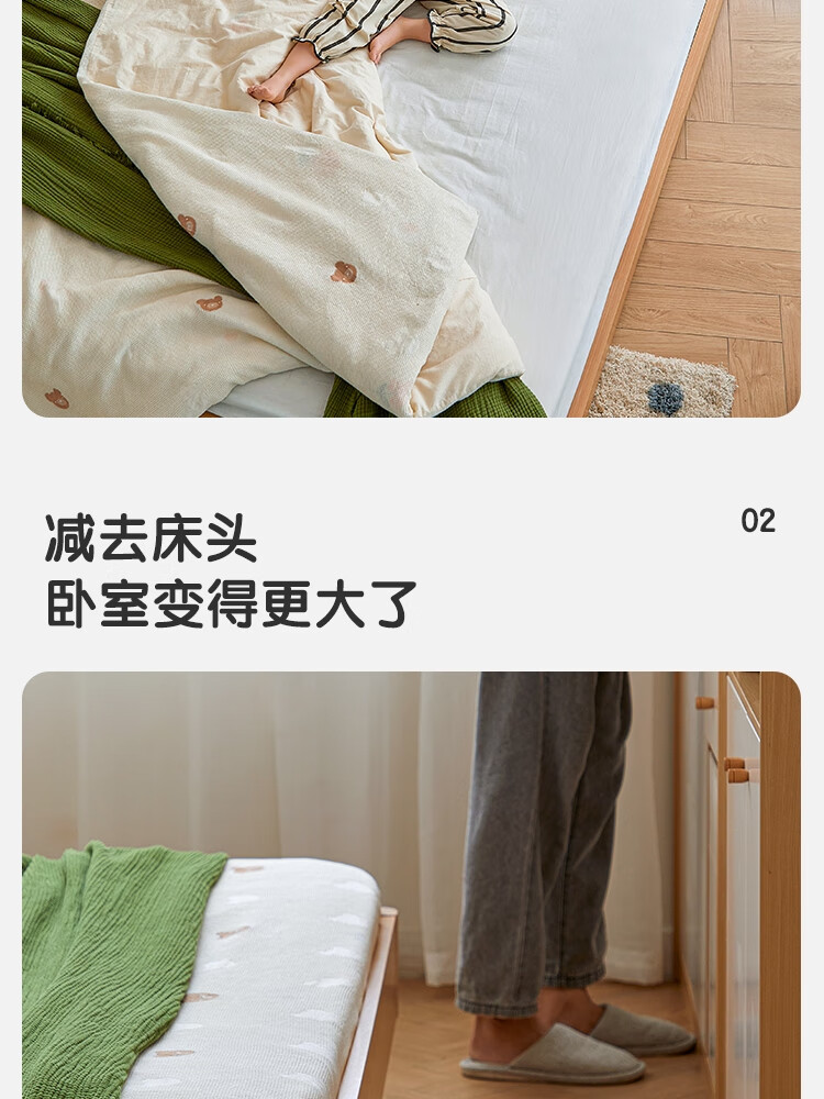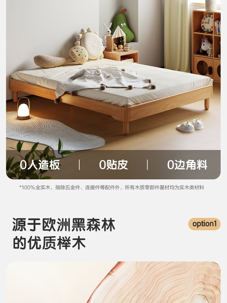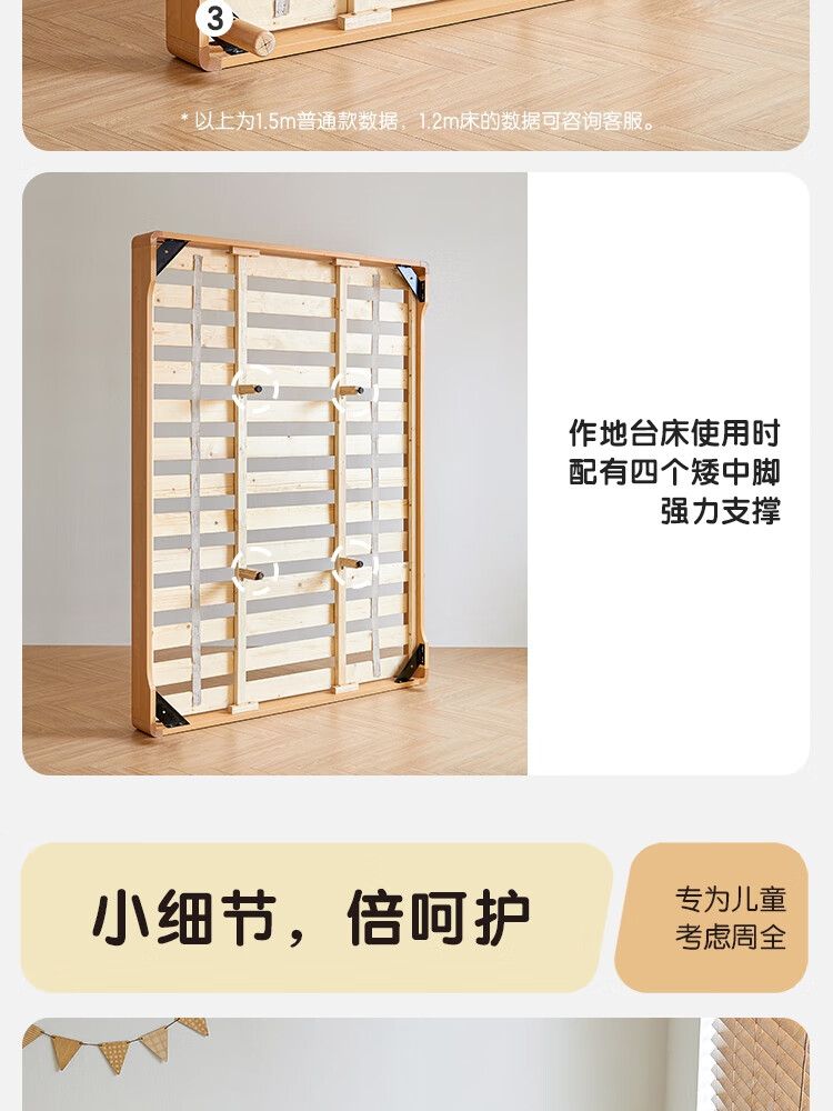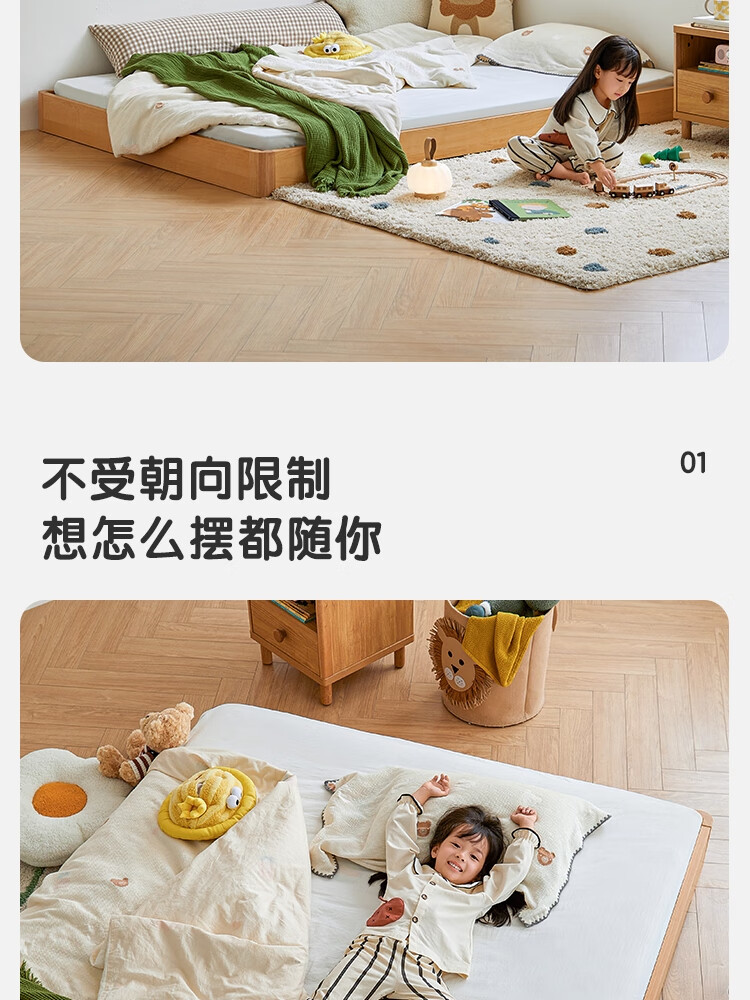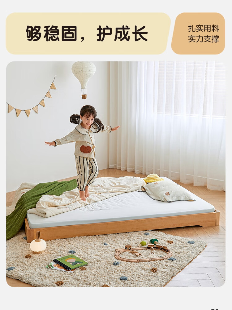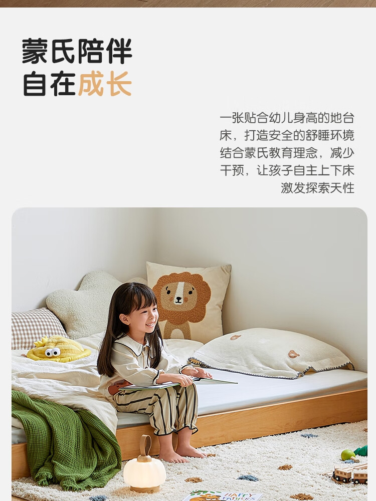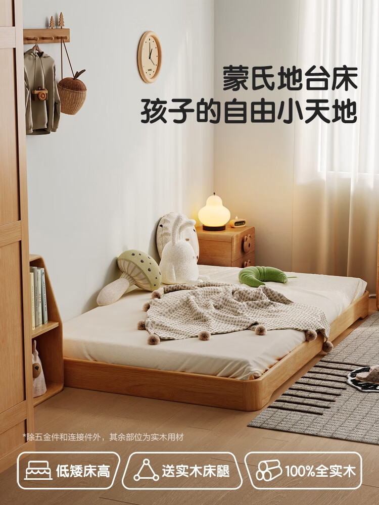 Lin's Home Montessori platform bed floor bed all solid wood single bed tatami baby crib children's bed LH127A1 rubber wood | row frame without bedside bed 1.2mx2m bed + 0 glue spine pad (13cm)