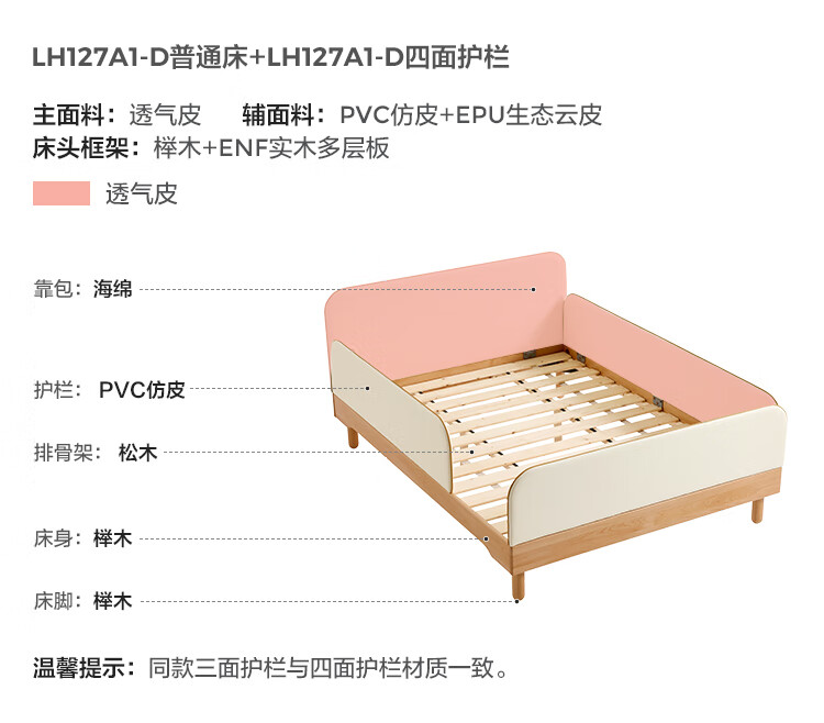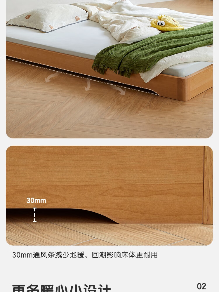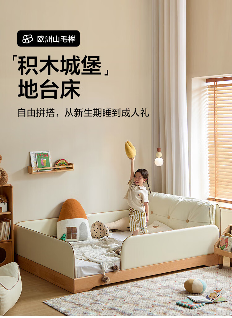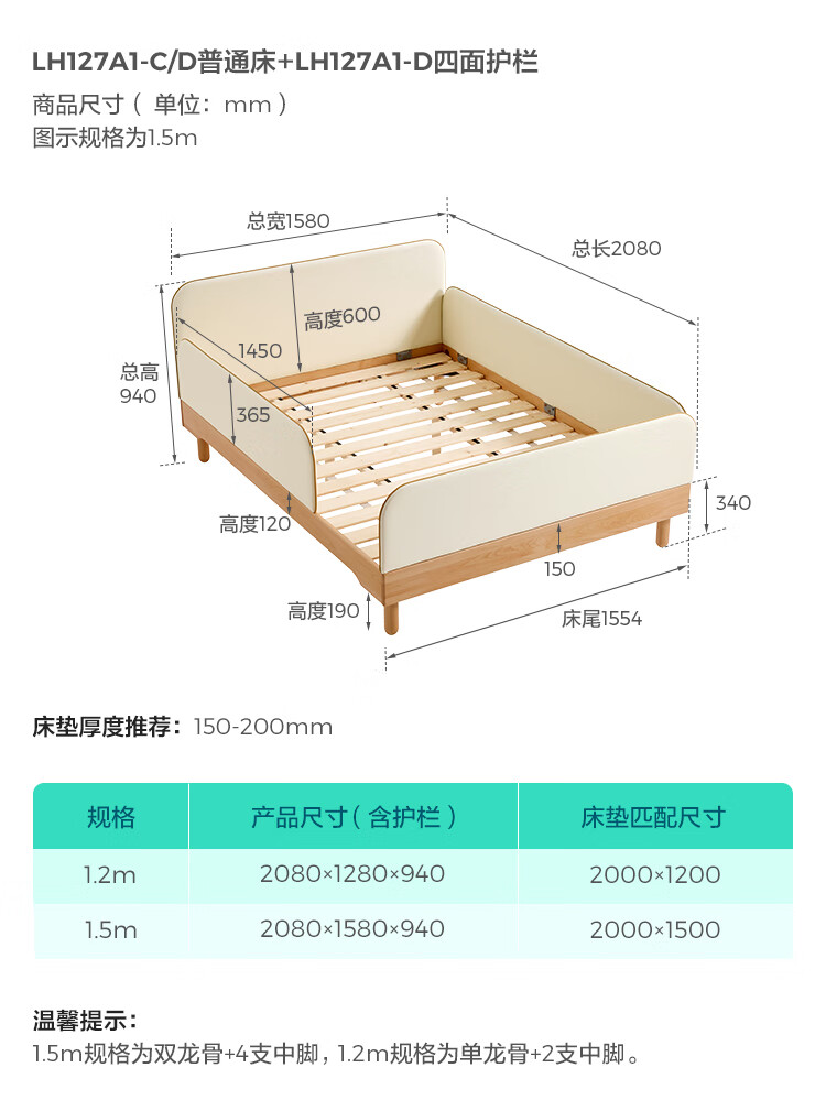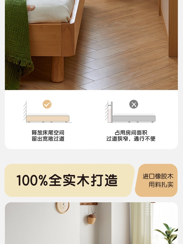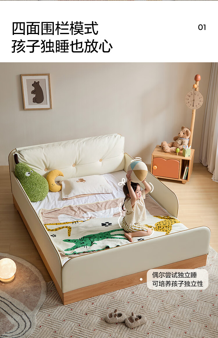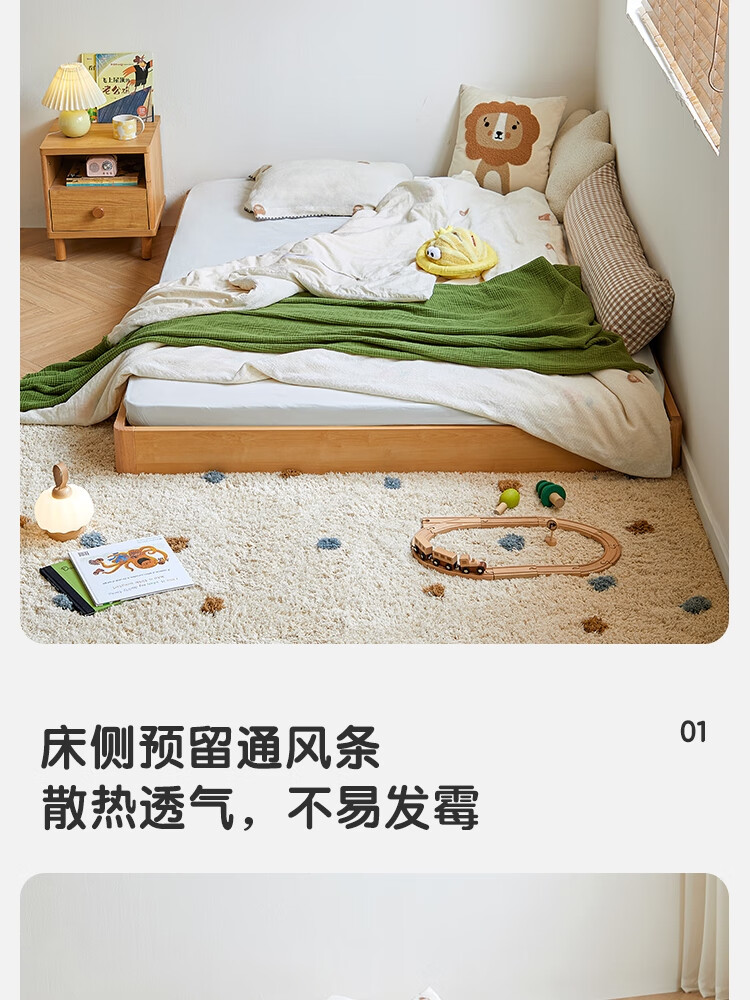 Lin's Home Montessori platform bed floor bed all solid wood single bed tatami baby crib children's bed LH127A1 rubber wood | row frame without bedside bed 1.2mx2m bed + 0 glue spine pad (13cm)