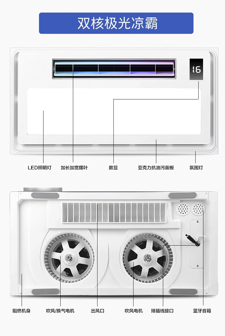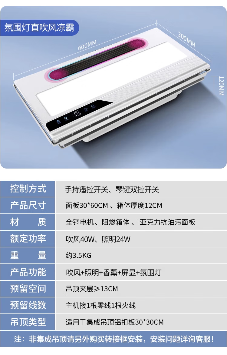 Haotai Intelligent Cooler Kitchen Recessed Lighting 2-in-1 Air Conditioner Integrated Ceiling Ventilation Cooler Fan Cooler 60W Lighting | Sixteen Functions | Mijia | Voice