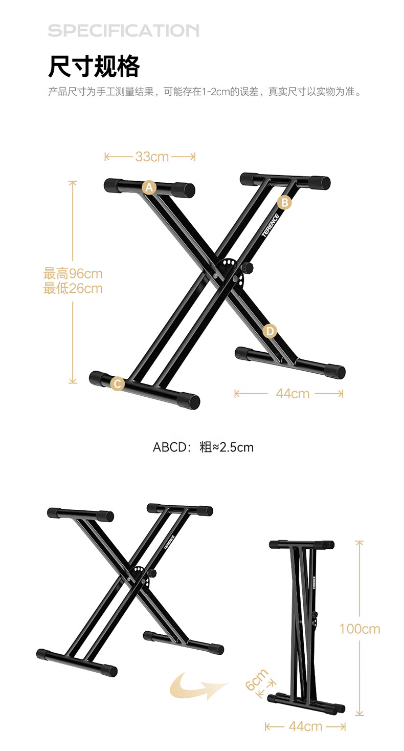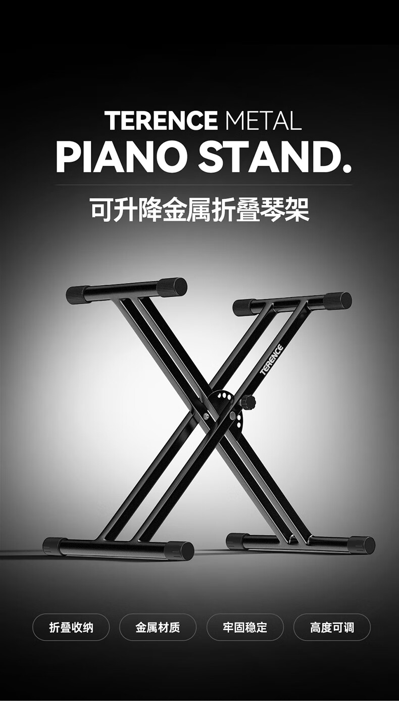 TERENCE PIANO electric piano can be lifted and lowered, thickened and thickened, portable piano stand 54 61 76 88-key universal electronic piano stand original double-tube X-shaped folding piano stand