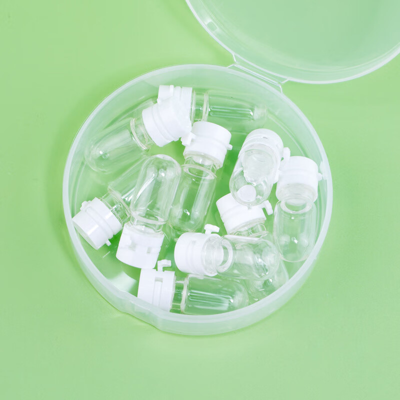 Suican small light bulb refill bottle, daily disposable essential oil bottle, disposable wide-mouth makeup remover glass sample liquid refill empty bottle, portable round bottom bottle 1.5ml, 20 pieces, free storage box