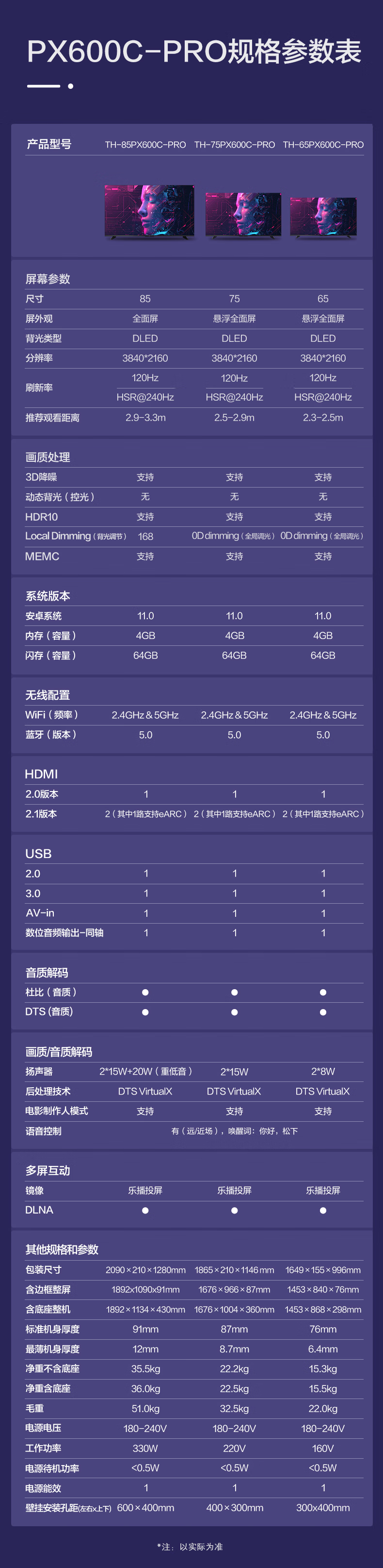 Panasonic TV PX600CP 120Hz High Brush 4K Game TV AI Smart Network Voice TV Screen Mirroring 2025 New Product Thin Model Flagship Store Same Offline Model 85-inch TH-85PX600CP Free Installation Door-to-door Installation Rack Debugging Rack Included