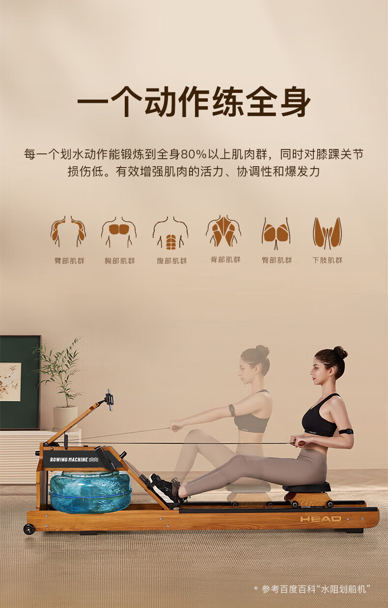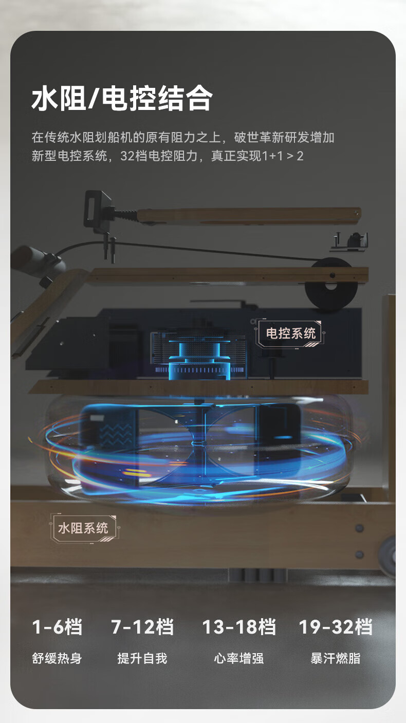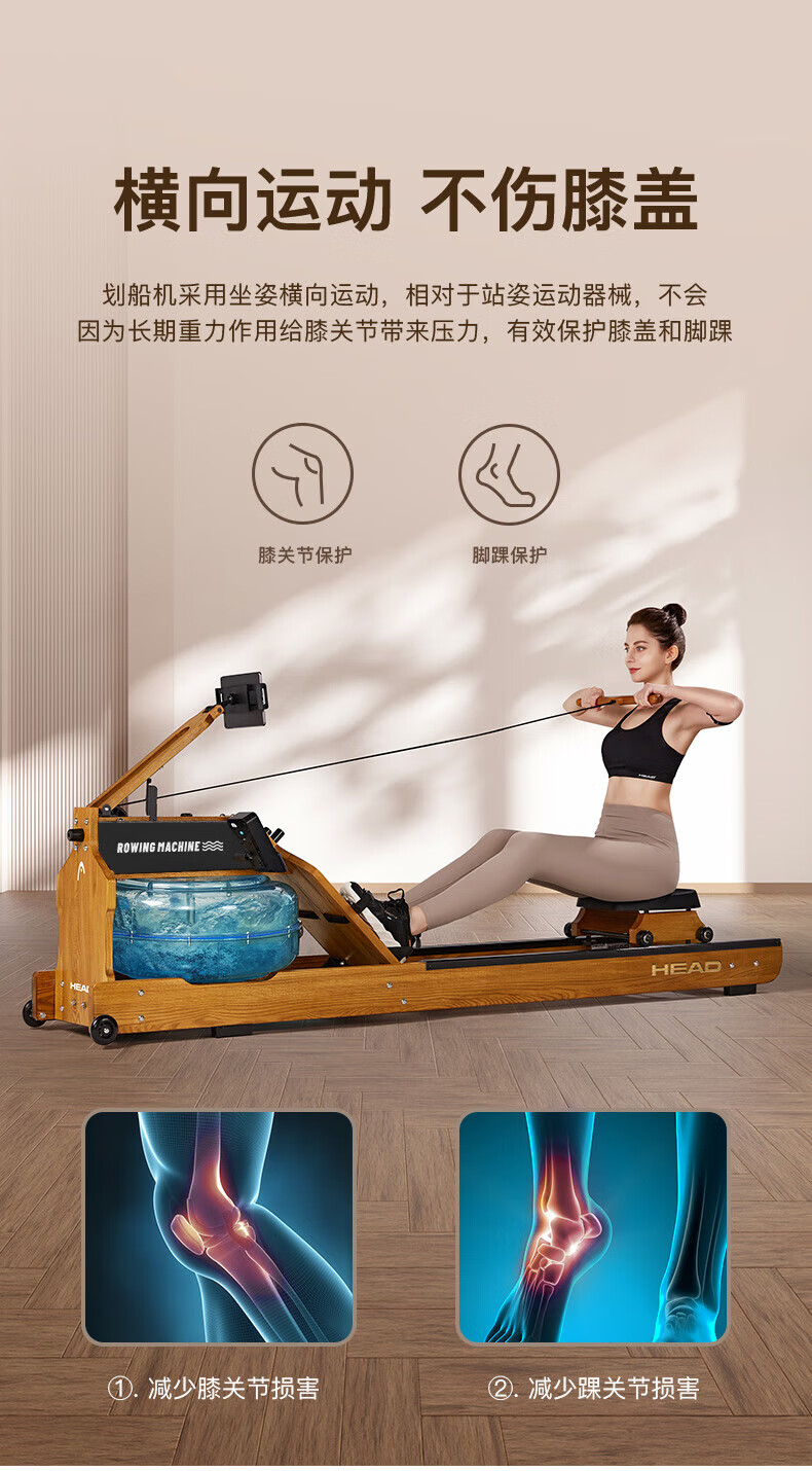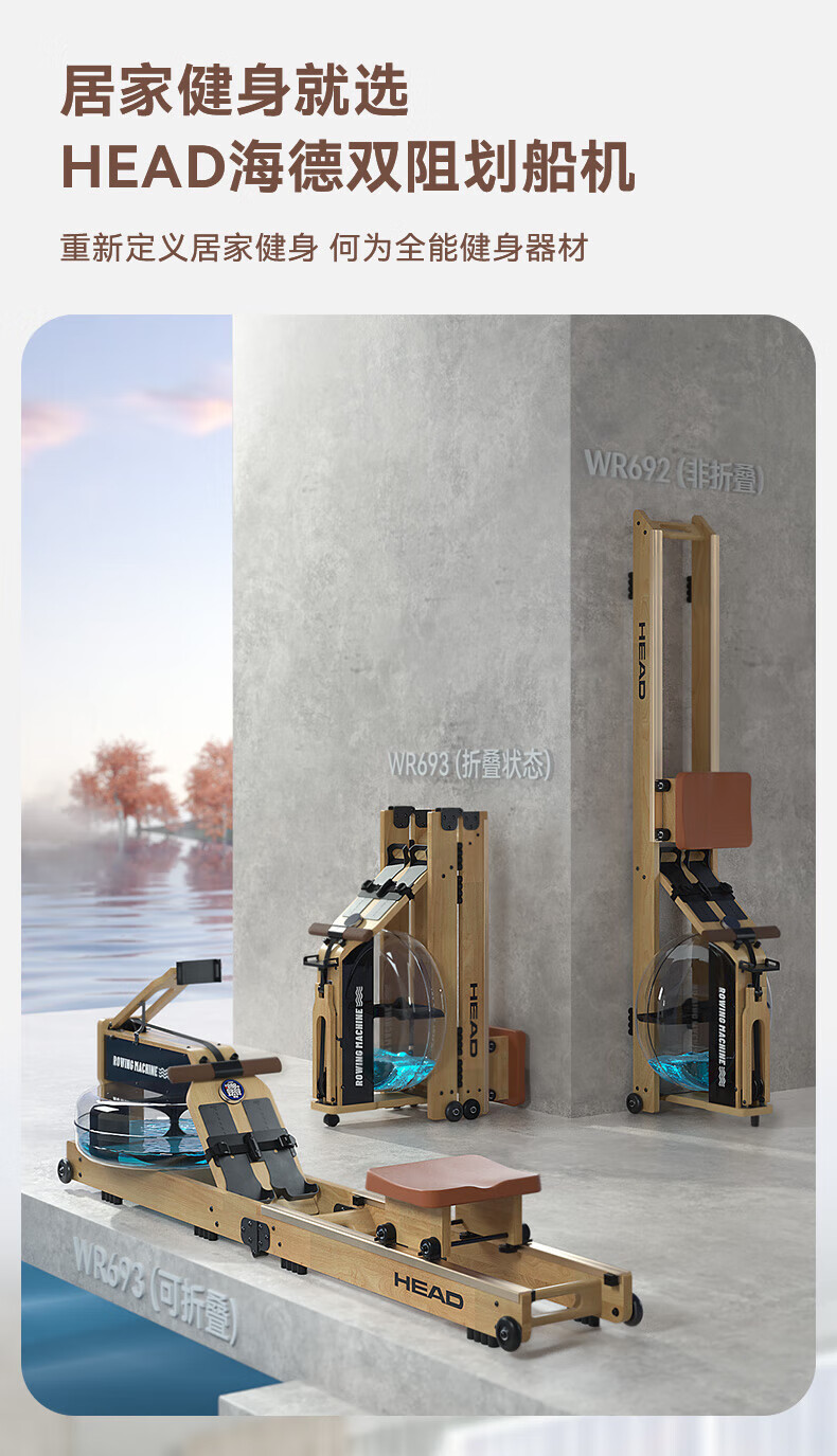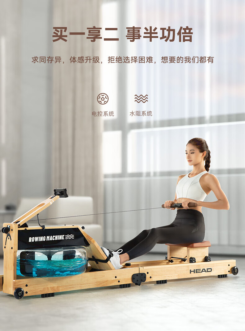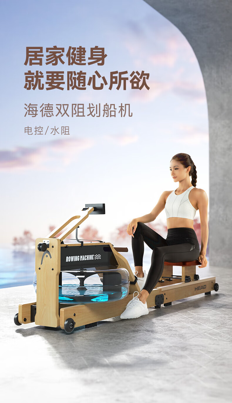 Hyde rowing machine home fitness water and electricity double resistance folding rowing machine aerobic fitness equipment rubber wood 7CWR655 upgraded dark version 7C special