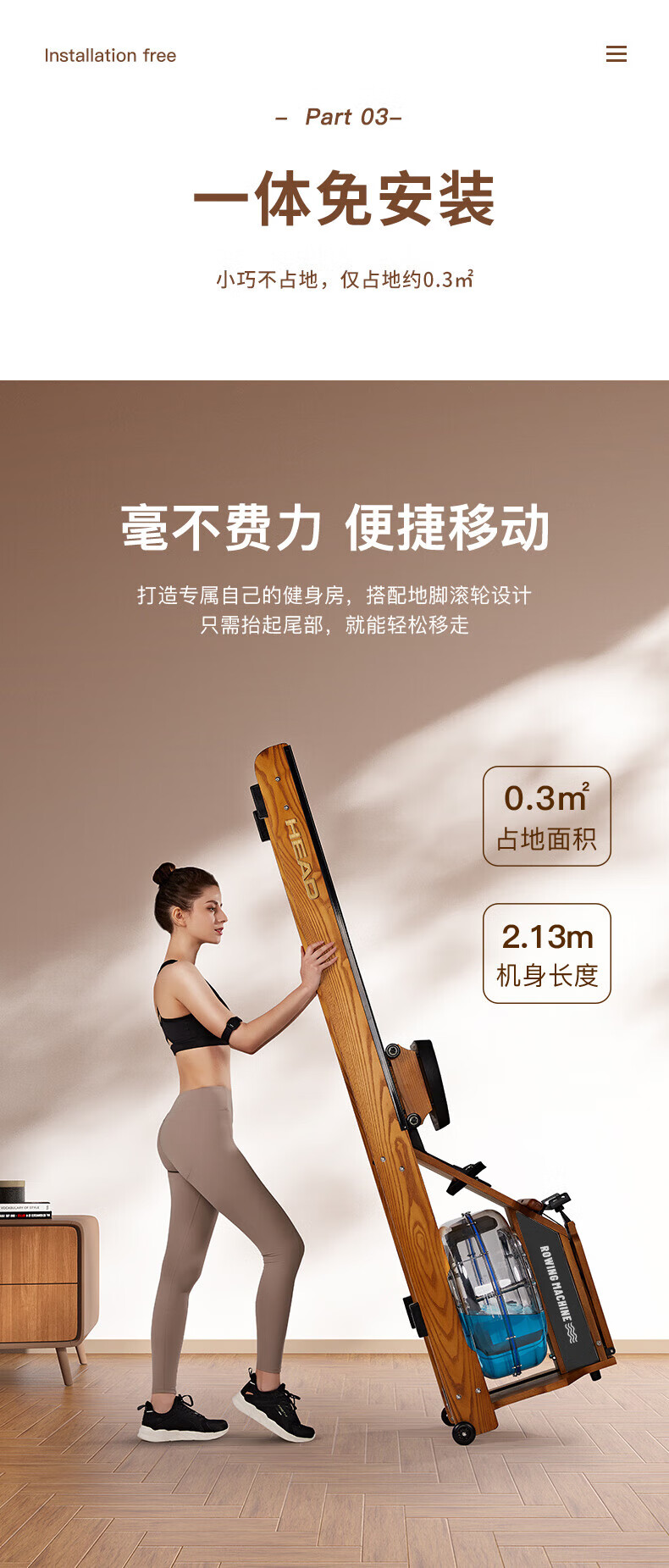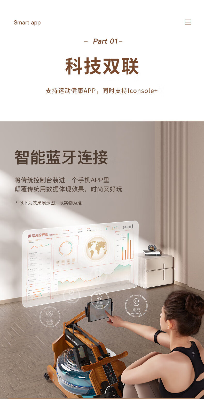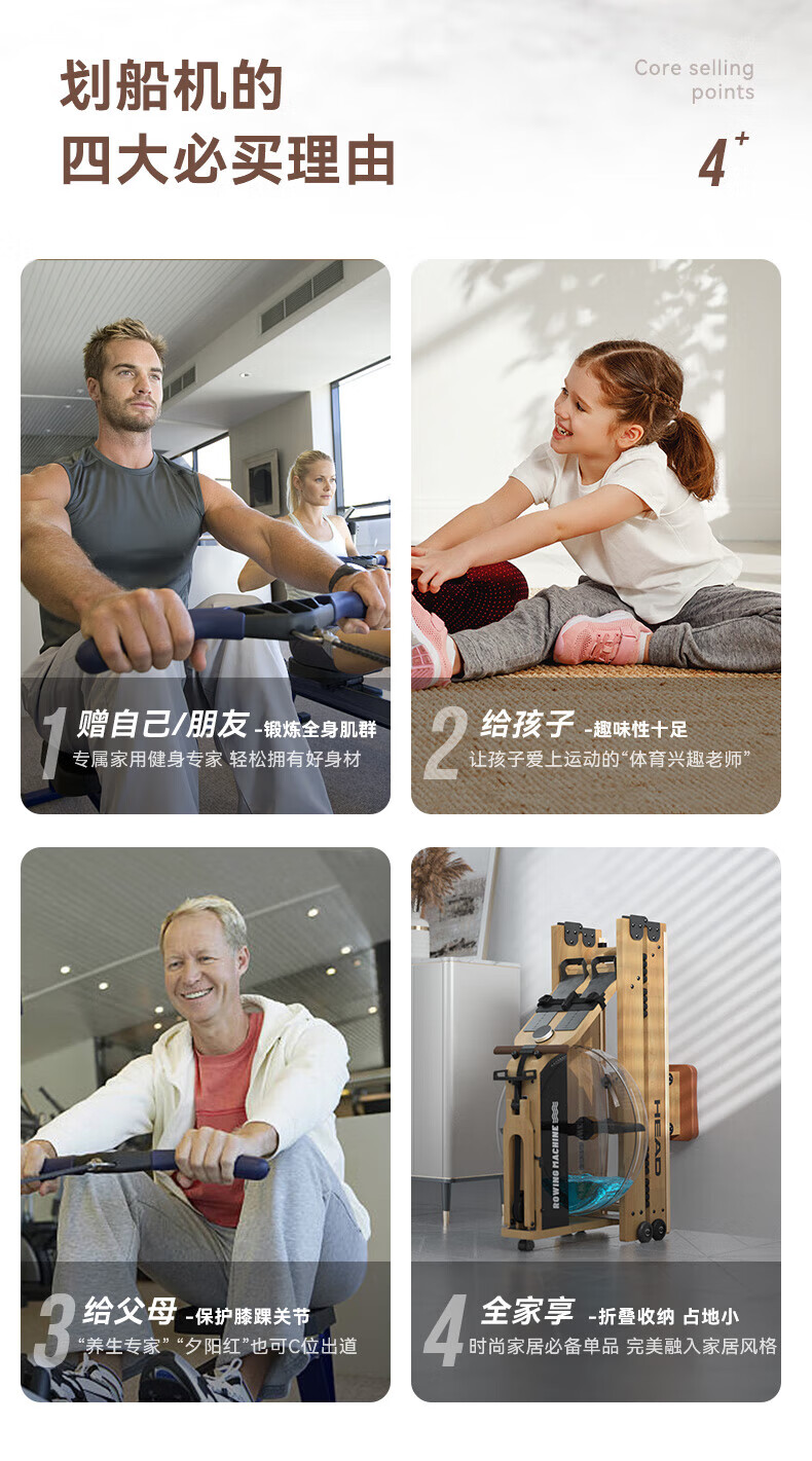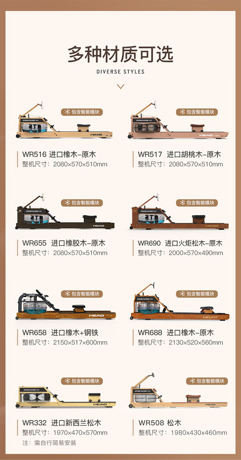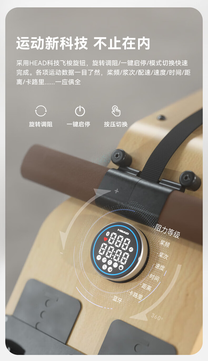 Hyde rowing machine home fitness water and electricity double resistance folding rowing machine aerobic fitness equipment rubber wood 7CWR655 upgraded dark version 7C special