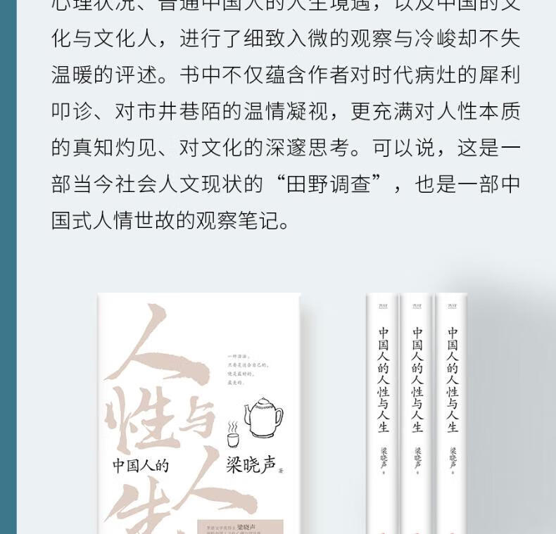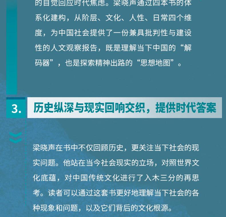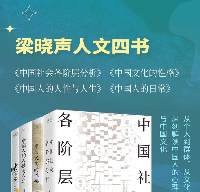 Liang Xiaosheng’s Four Humanities Books: Analysis of various classes of Chinese society + Character of Chinese culture + Chinese human nature and life + Chinese people’s daily life Classic work by Mao Dun Literature Award winner Liang Xiaosheng