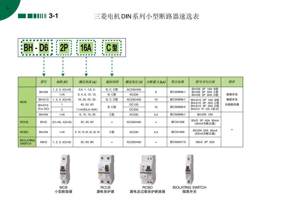 Mitsubishi 2P(1P+N) 40A32A25A20A16A10A6A leakage circuit breaker BV-DN 1PN 16A 30MA