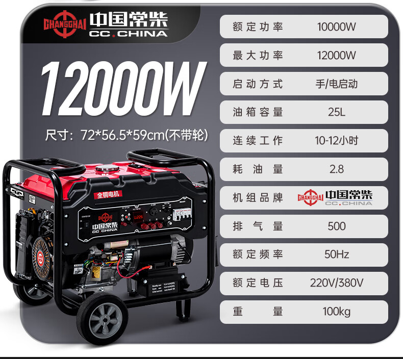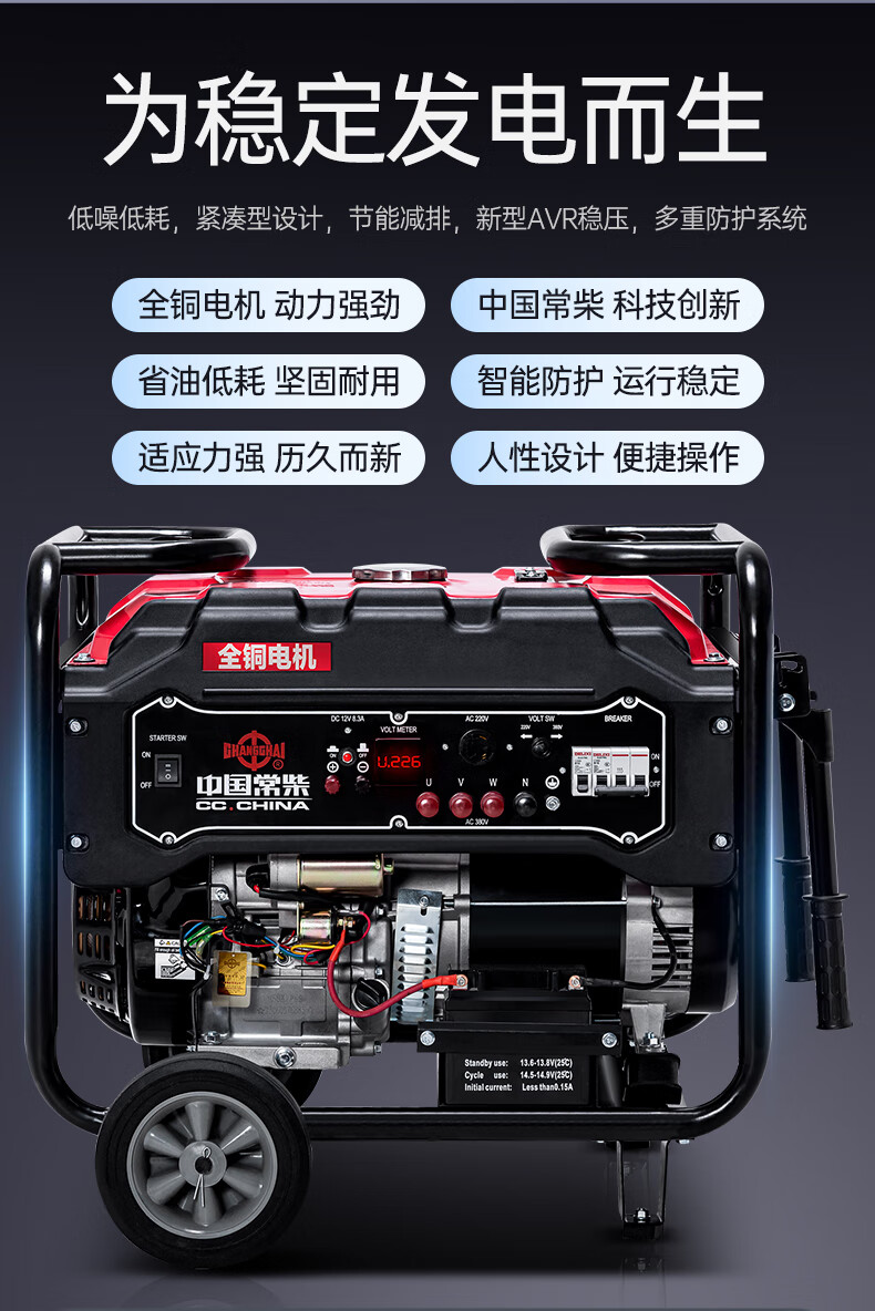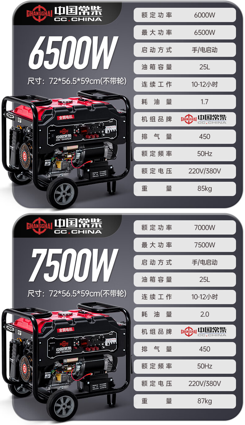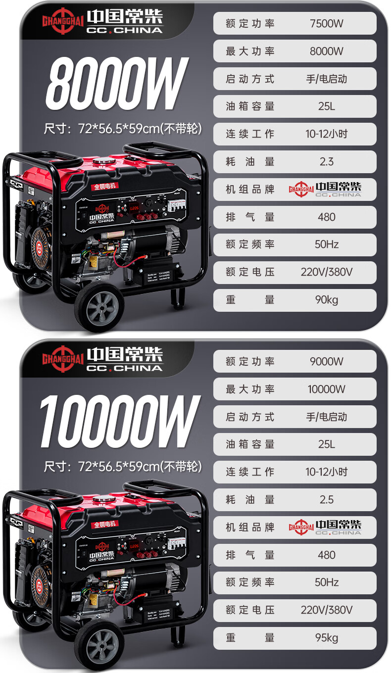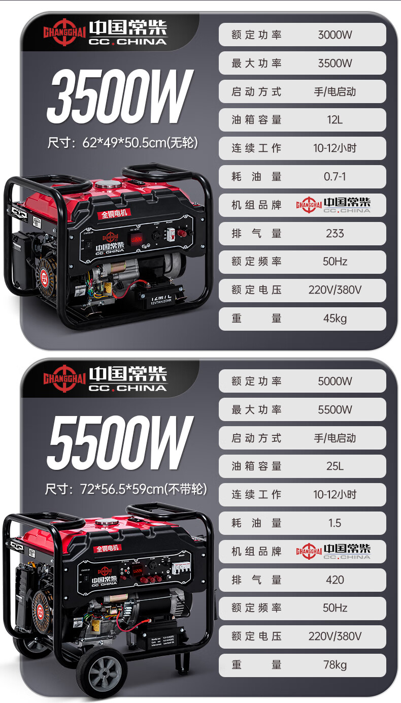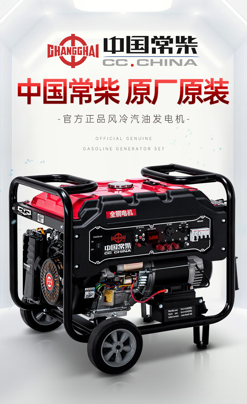 Changchai small household portable gasoline generator 3kW 5/6/8/10/12KW single-phase 220V three-phase 380V Changchai 3kw electric start multi-fuel 220V