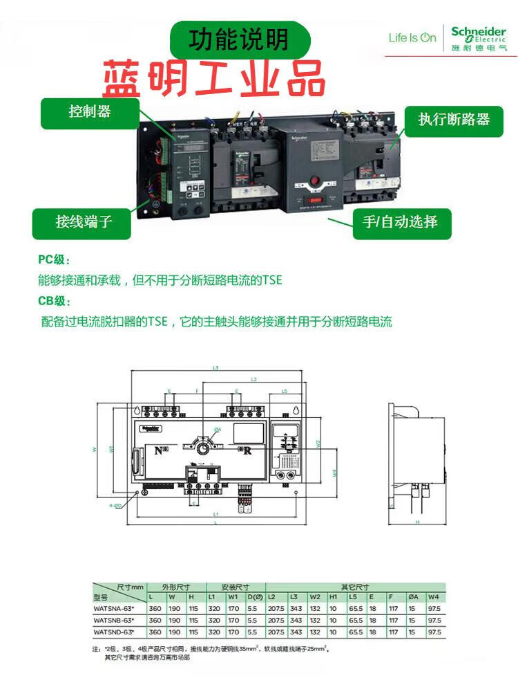 Wangao dual power automatic transfer switch WATSNB100A/32A/250A/63A/4P/CB level 100A 4p